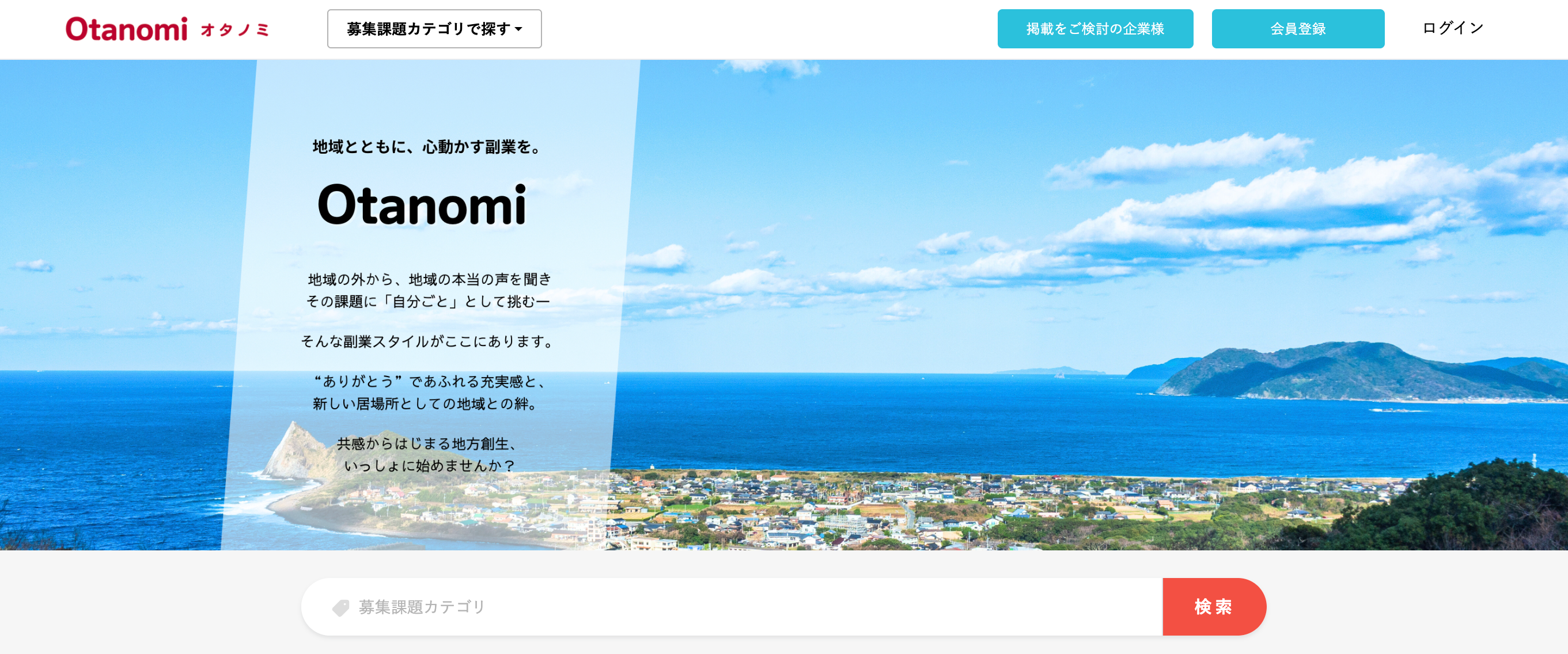 私たちはこの2つの課題を解決すべく、地域の中小企業・自治体が抱えている「お悩み」や「課題」をオープンにすることで、その課題を解決できる「副業・兼業人材」とを繋ぎ、地域経済の発展や関係人口の創出につなげたいと考え、マッチングプラットフォームの「Otanomi(オタノミ)」(https://o-tanomi.jp)を立ち上げました。