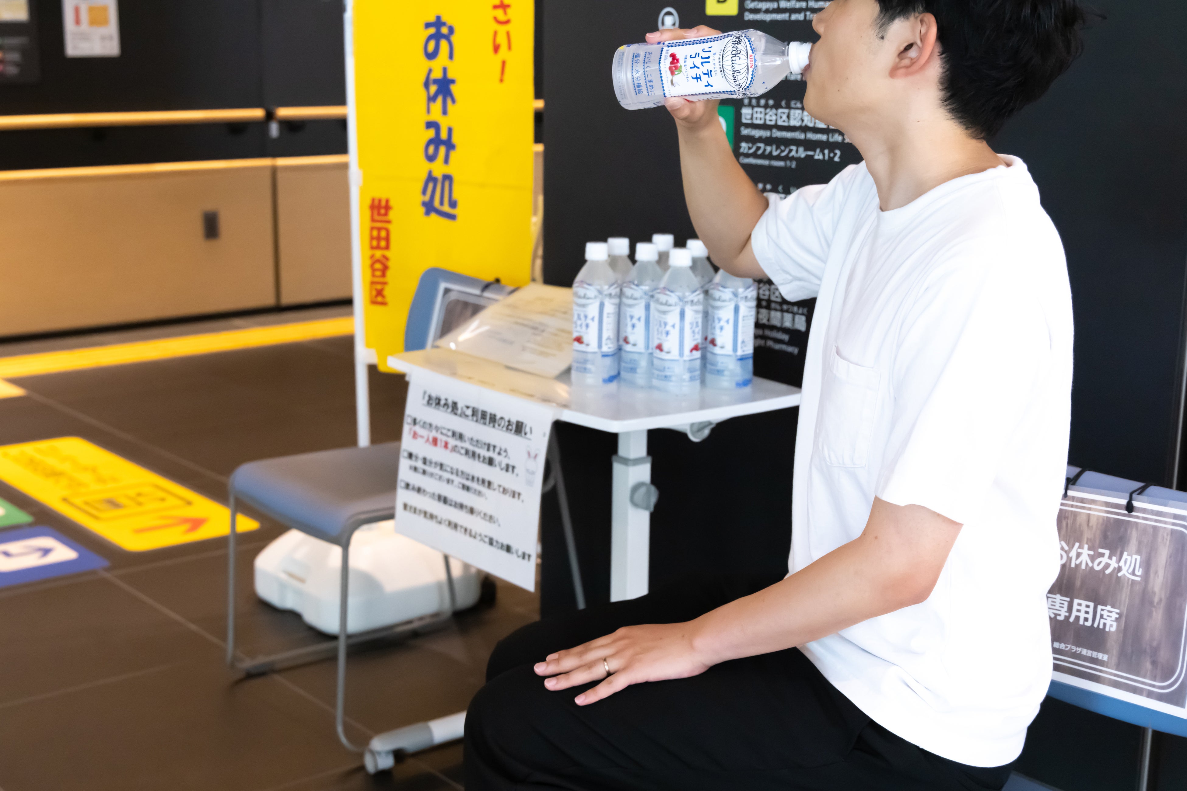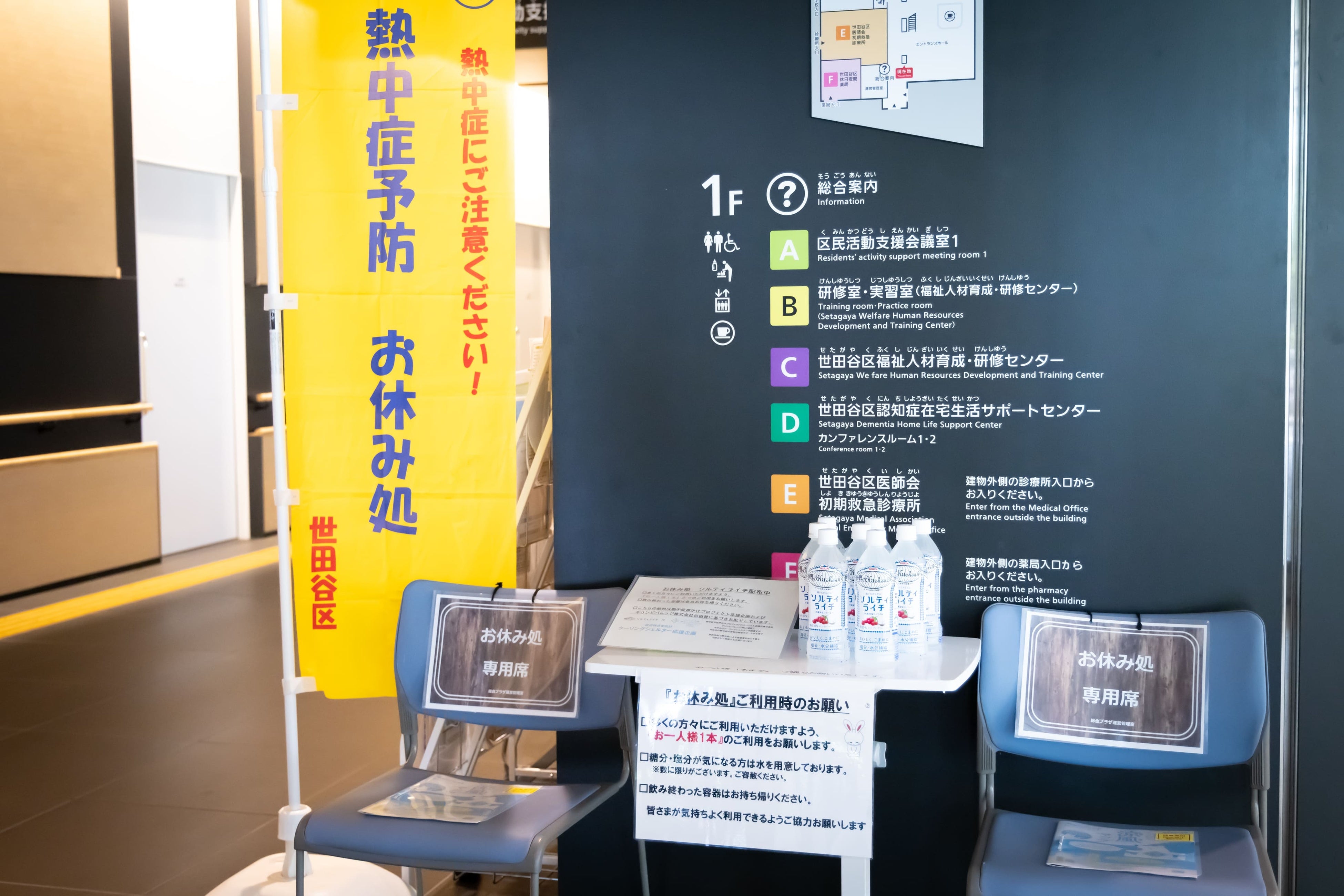 配布予定施設の世田谷区立保健医療福祉総合センター「熱中症予防 お休み処」での配布の様子