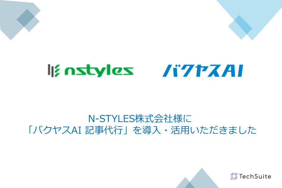 お客様にご満足いただけて、大変うれしく思っております。TechSuite株式会社は引き続き、「バクヤスAI 記事代行」を通じて高品質なコンテンツ提供をサポートし、N-STYLES様をはじめとするお客様のビジネス成長に貢献してまいります。