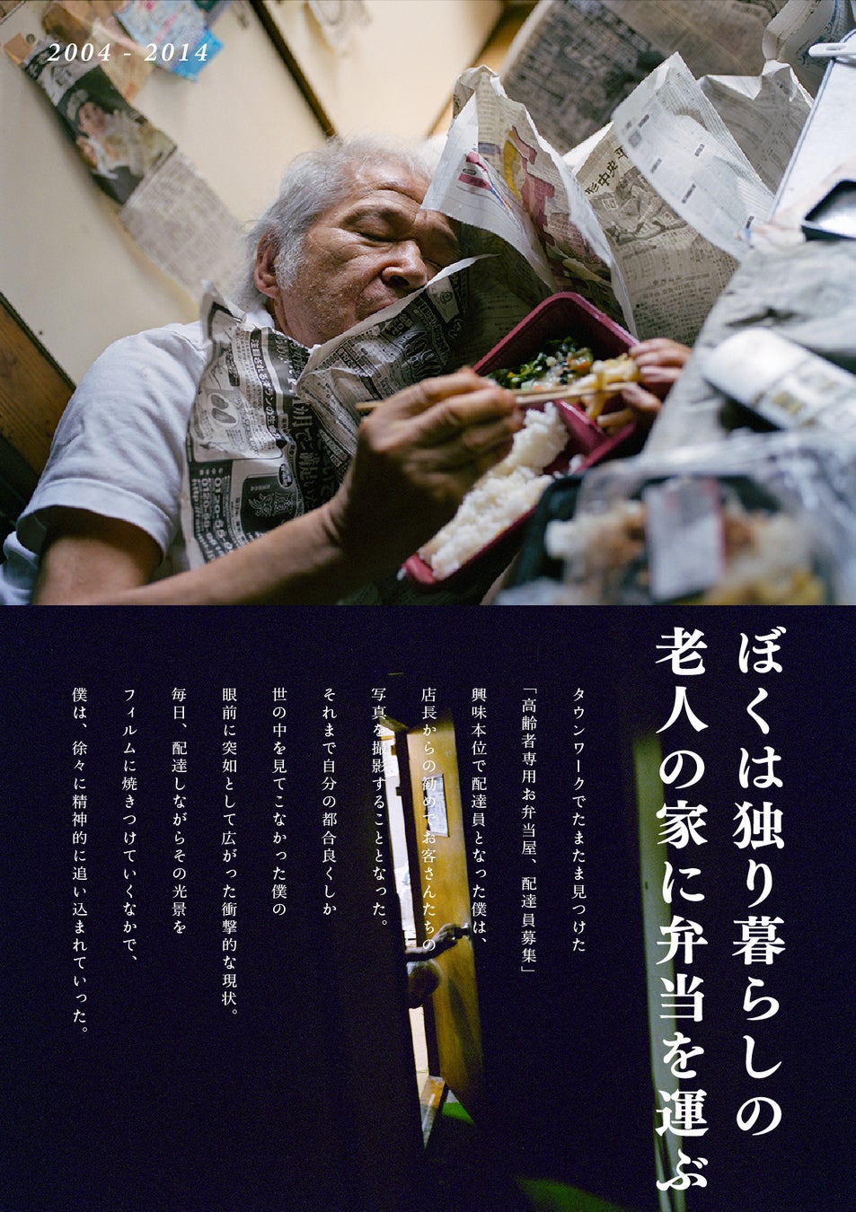 内容:いのち、食、農をテーマに撮り続けるカメラマン。今回は「共食」をテーマにしたプロジェクト「ぼくは独り暮らしの老人の家に弁当を運ぶ」を中心とした展示です。