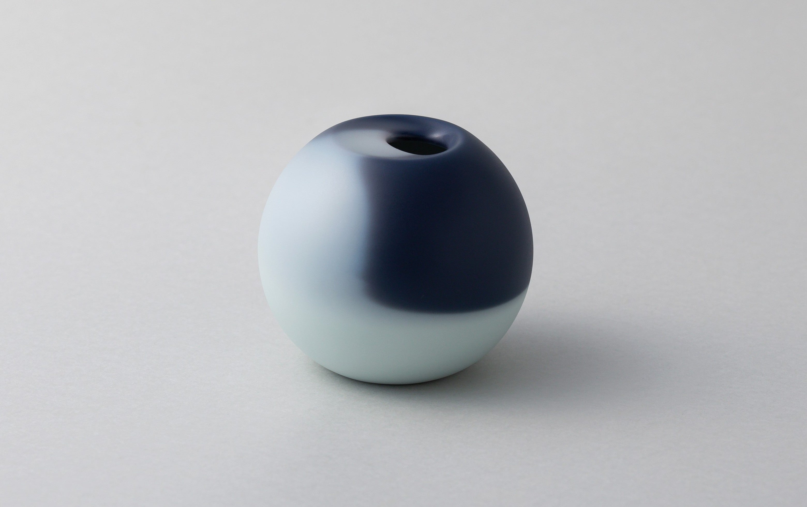 深い紺から、淡く美しい青磁色へ変わる「紺から青磁(Kon-kara-seiji)」と黒色から墨色へ、朧月のようにゆらぎながら変化する「闇に朧月(Yami-ni-oborozuki)」の2デザイン。 有田の職人とともに、1,000種類以上もある釉薬の中で、自然の風景のように情緒的な色変化が楽しめる釉薬を選び作った、こだわりのデザインです。