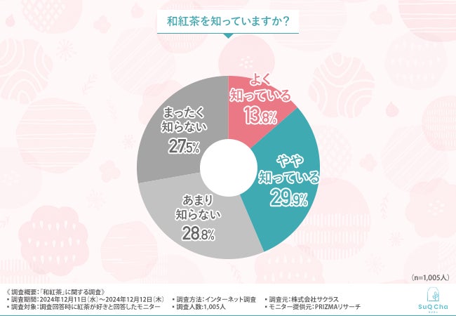 そこで今回、日本全国の和紅茶を取り扱う『SuQ Cha(サクチャ)』(https://www.suqcha.com/)を運営している株式会社サクラスは、紅茶が好きな方を対象に、「和紅茶」に関する調査を行いました。