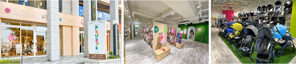 同社が運営する買取サービス「FUKUCHAN」の店舗売り上げの中で全体の約20%を占め、トップクラスを誇る「FUKUCHAN名古屋御器所店」と併設するかたちで出店。これまでの店舗と同様に、明るく天井が高い開放感のある空間や、授乳室・おむつ替え台のあるベビーケアルームを常設しているほか、「ふくちゃんリユスタ」の商品の中で、特にスタッフがおすすめするコーディネートを着用したマネキンを設置しております。