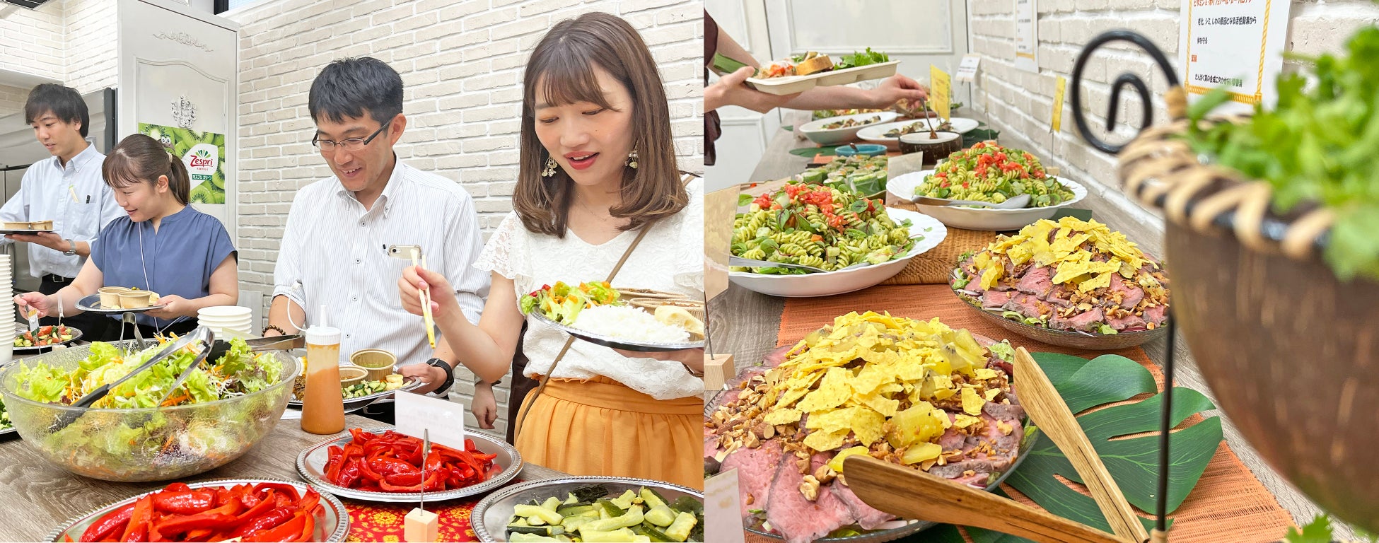 第3回となる今回は、福利厚生の一環として「サラダビュッフェランチ」を開催。食を提供する企業として、野菜の摂取量が少ない働く世代(社員)を対象に、体験型学習を通じて野菜摂取量の向上を目的としました。管理栄養士が監修し、” 1食200g以上の野菜摂取”を目標に、1週間日替わりサラダビュッフェを提供。