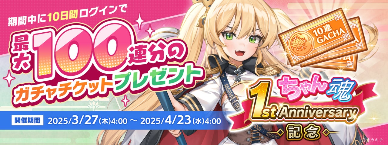 「次の夢中をつくる会社」をポリシーに、数々の人気ゲームの開発を担う株式会社オカキチ(本社:東京都渋谷区、代表取締役:岡田茂)が提供する、オリジナルNFTゲーム「ちゃんごくし!」シリーズの第一弾タイトル「ちゃんごくし!結魂しよう」(以下:ちゃん魂)が、3月26日(水)に1周年を迎えました。