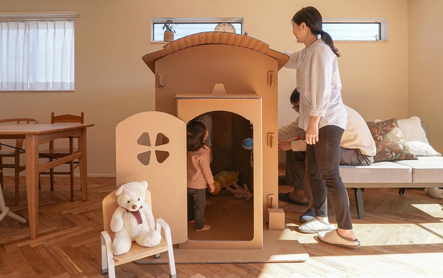 そんな想いを元に、ホロスホームで家を建てるファミリー向けに「無料」で、一級建築士がダンボールハウスを作るサービスを始めました。