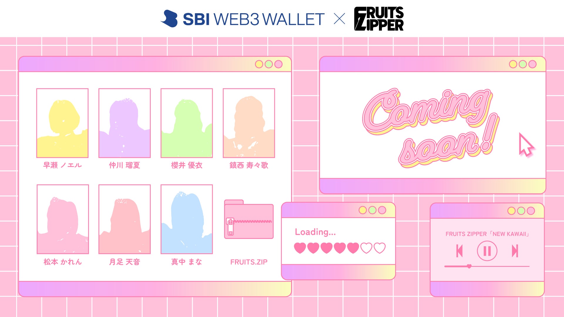 SBI VCトレード株式会社(本社:東京都港区、代表取締役:近藤智彦、以下:SBI VCトレード)、アソビシステム株式会社(本社:東京都渋谷区、代表取締役:中川悠介、以下:アソビシステム)、ソーシャルマーケティング株式会社(本社:東京都文京区、代表取締役:相原和明、以下:ソーシャルマーケティング)は、このたびWeb3領域での協業に関する基本合意書を締結し、第一弾の施策として、アソビシステム所属のタレント「FRUITS ZIPPER」のNFT プレゼントキャンペーンを開始することをお知らせいたします。