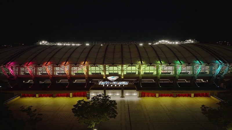また、照明プラットフォーム「Interact(インタラクト)」を導入し、スタジアム内の照明のムラをなくすことで、観客の照明体験やスポーツ中継の放送品質を向上させることに貢献いたしました。「Interact」は、柔軟な照明制御が可能であることから各競技に合わせて容易に点灯の切り替えができるだけでなく、フルカラー照明を交えた多彩な照明演出が可能となり、ユアテックスタジアム仙台が目指す、プレーヤーと観客の興奮と感動を一体化させる「劇場型スタジアム」に貢献いたしました。
