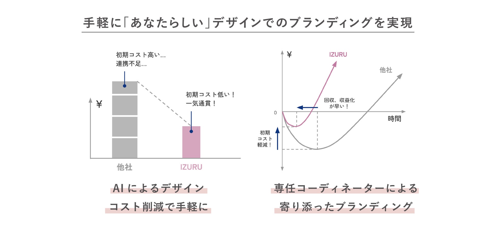 弊社ではこのような背景から、お店やサービスの立ち上げをもっと手軽に進めるためのブランディングサービス「IZURU」を開発しました。