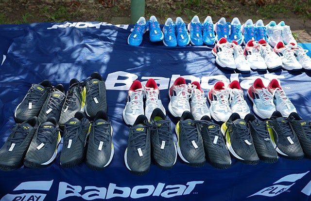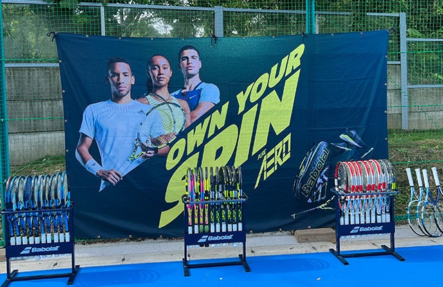 バボラのコートでは、「PURE AERO」シリーズをはじめ、「PURE DRIVE」「PURE STRIKE」「EVO DRIVE」「EVO AERO」「PURE AERO RAFA」シリーズのラケットの試打が行えました。