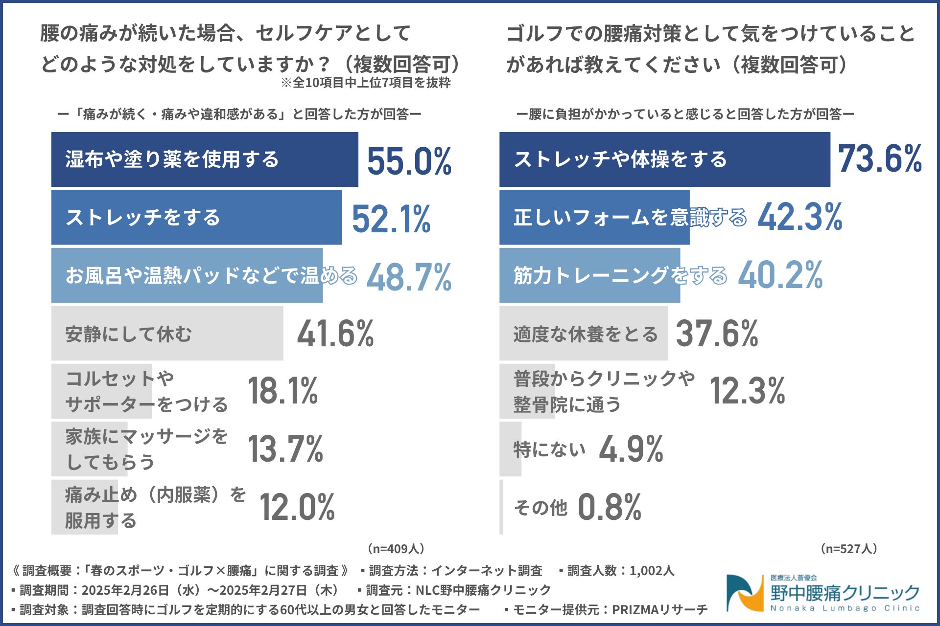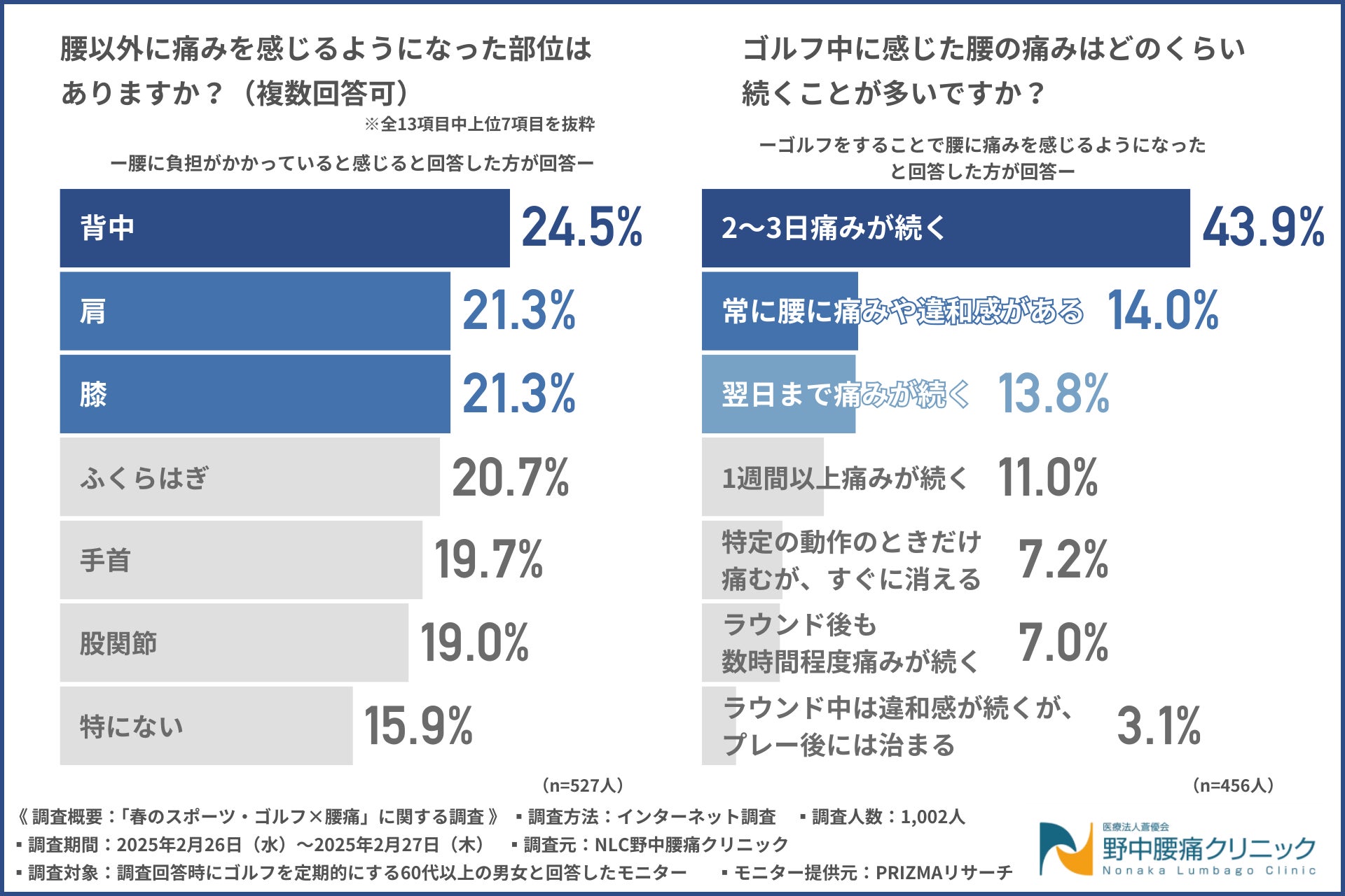 野中腰痛クリニック(所在地:大阪府大阪市東淀川区、医療法人蒼優会理事長:野中 康行)は、ゴルフを定期的にする60代以上の男女を対象に、「春のスポーツ・ゴルフ×腰痛」に関する調査を実施しました。