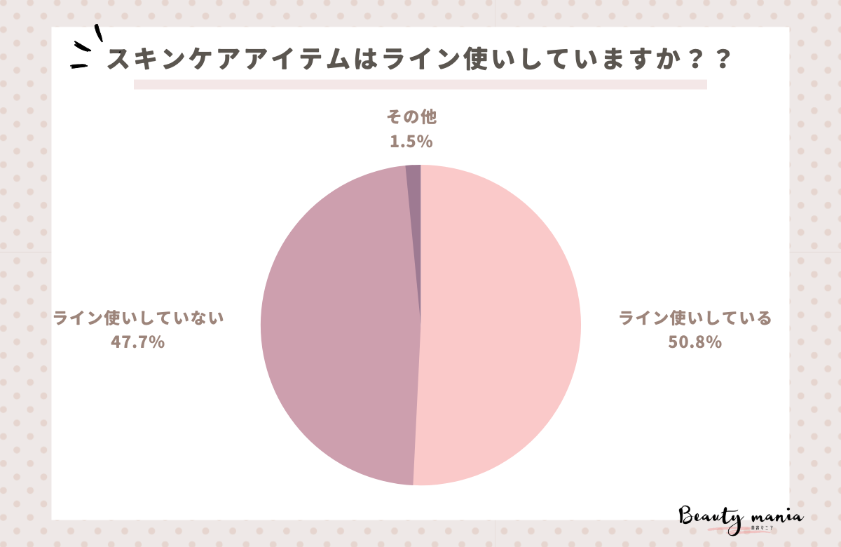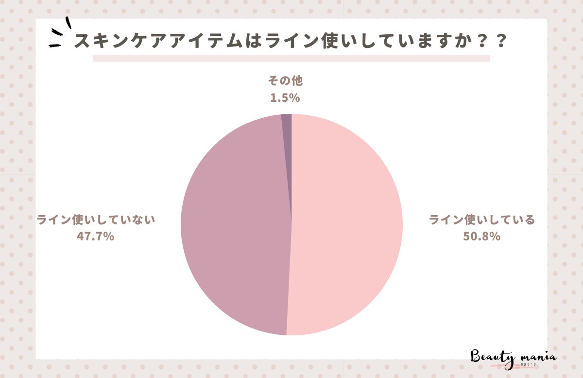 アンケート内容:スキンケアアイテムはライン使い、同じメーカーで揃えていますか?