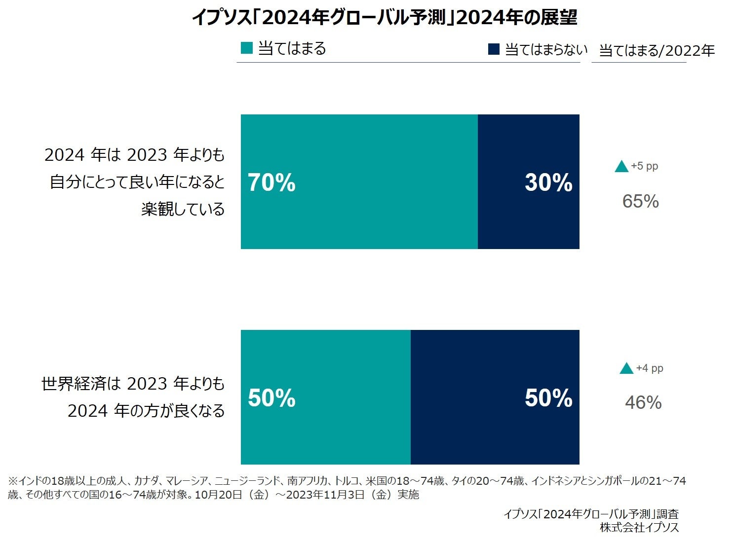 世界の70%の人が「2024年は良い年になる」と期待 ~日本の期待感は最下位ではあるものの昨年比3%上昇