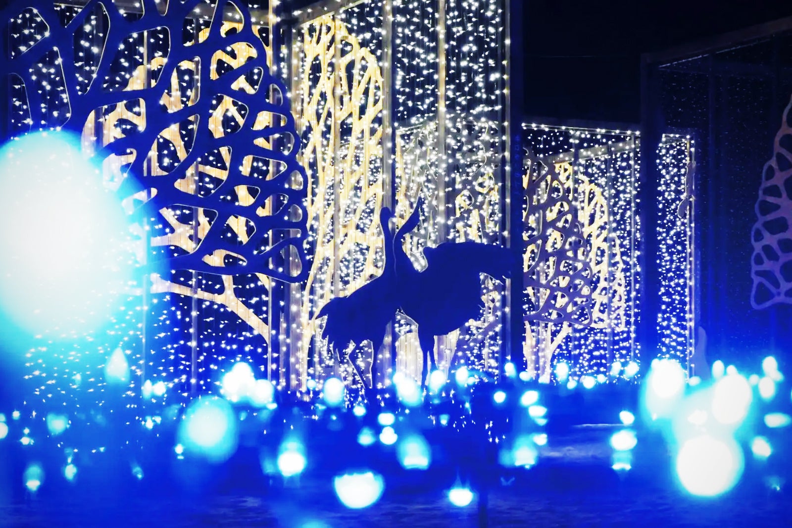 アイヌ文化にゆかりのある動物達をブロック型のイルミネーションが鮮やかに彩ります。
