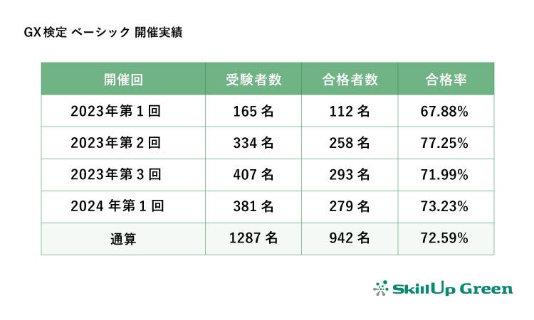 【2024年第1回GX検定 ベーシック実施結果】279名合格、合格率73.23%