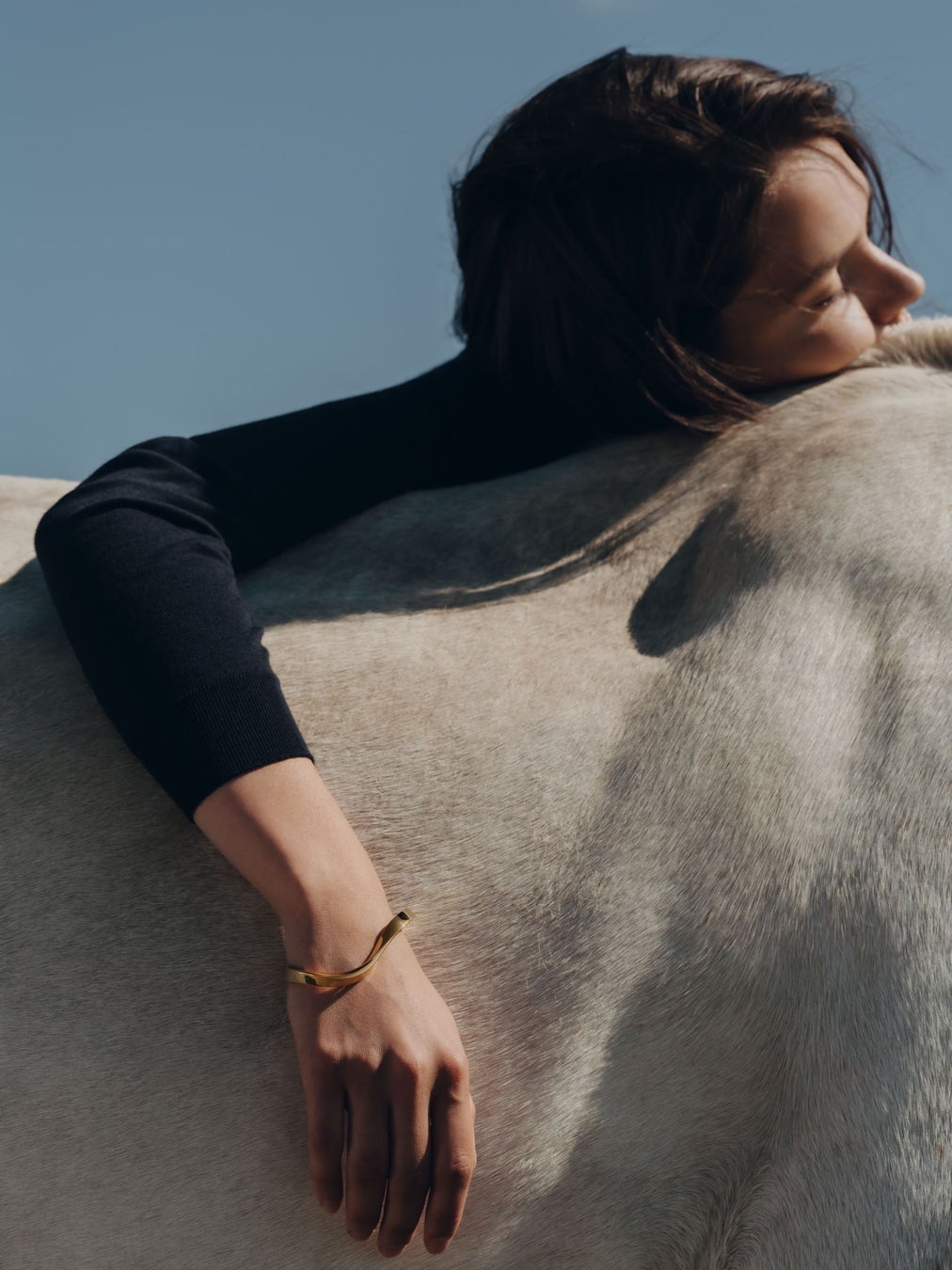不規則でうねるような風の動きからインスピレーションを得たÉole(エオル)コレクション。曲線に注目し、流れるようなフォルムやスパイラルなど、彫刻的な螺旋を表現しました。素材が持つ硬質な印象と、予測不可能な風の流動的な性質が対照をなしています。コレクションの名前の由来は、ギリシャ神話の風の神。その発音はこのラインが象徴する、自由なフォルムを思い起こさせます。
