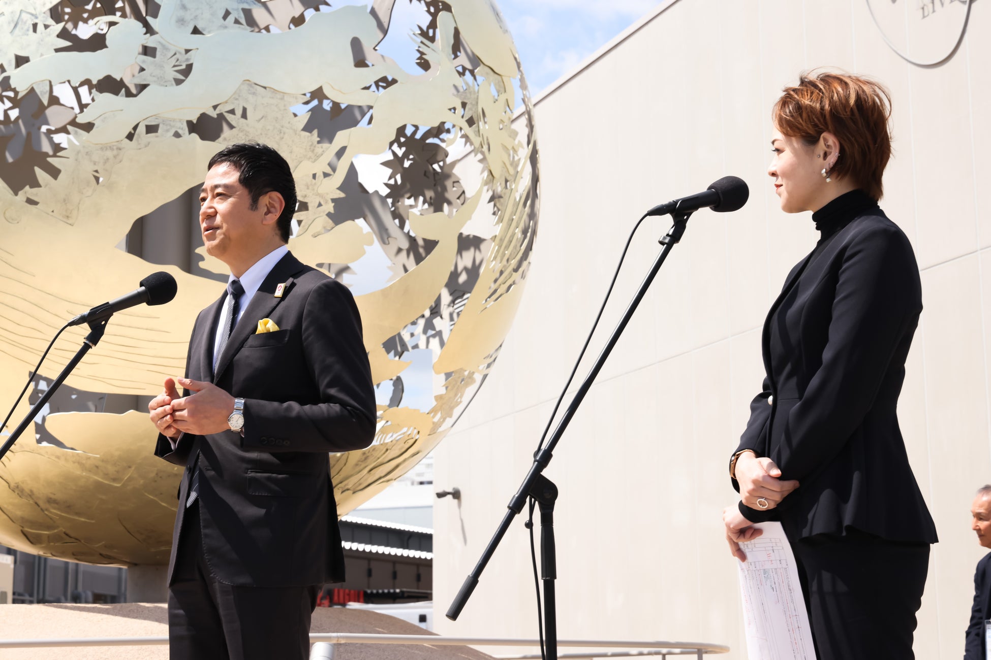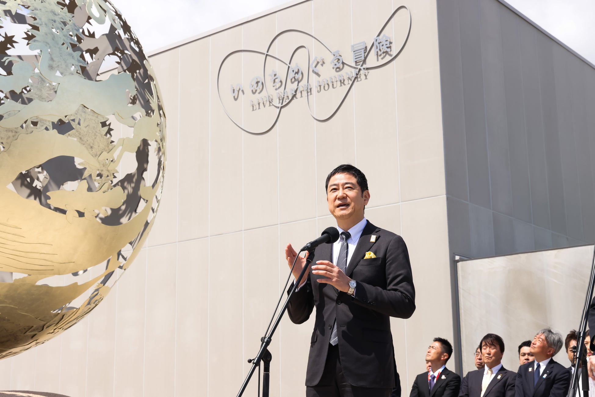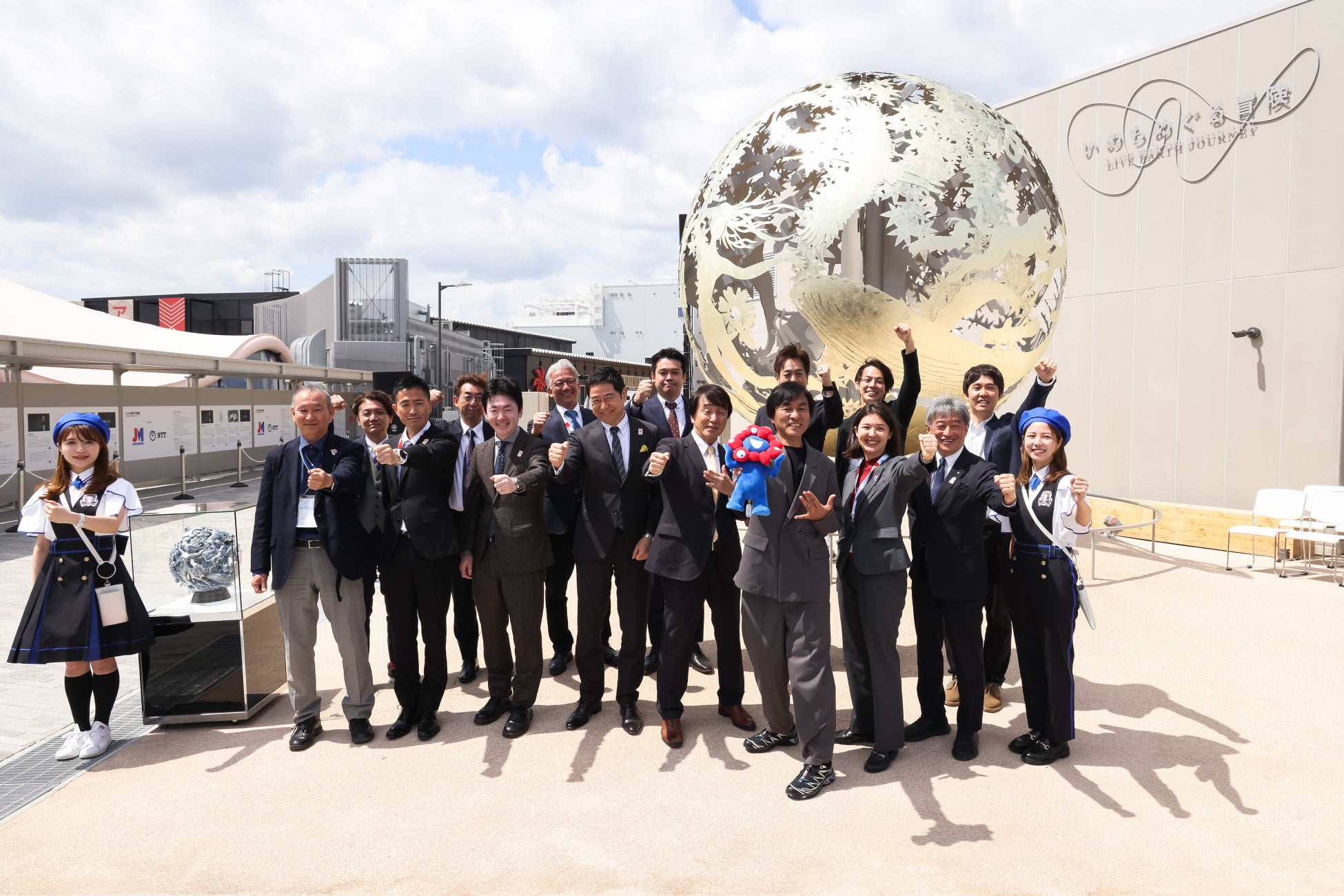 お披露目会には、河森正治プロデューサーはじめ、「いのちめぐる冒険」パビリオンのパートナー、そしてシグネチャーパビリオン「Better Co-Being」宮田プロデューサーにもゲストとしてお越しいただき、華々しく金色に輝くモニュメントをお披露目しました。