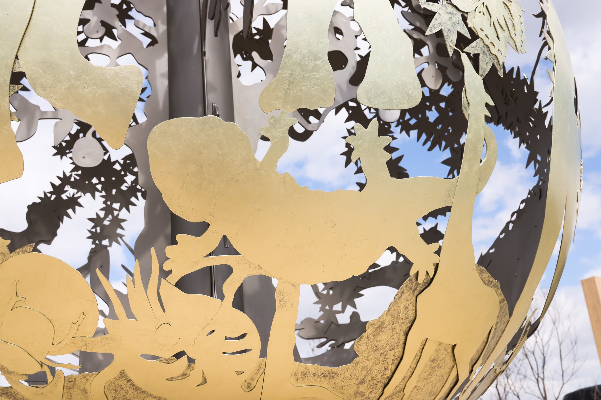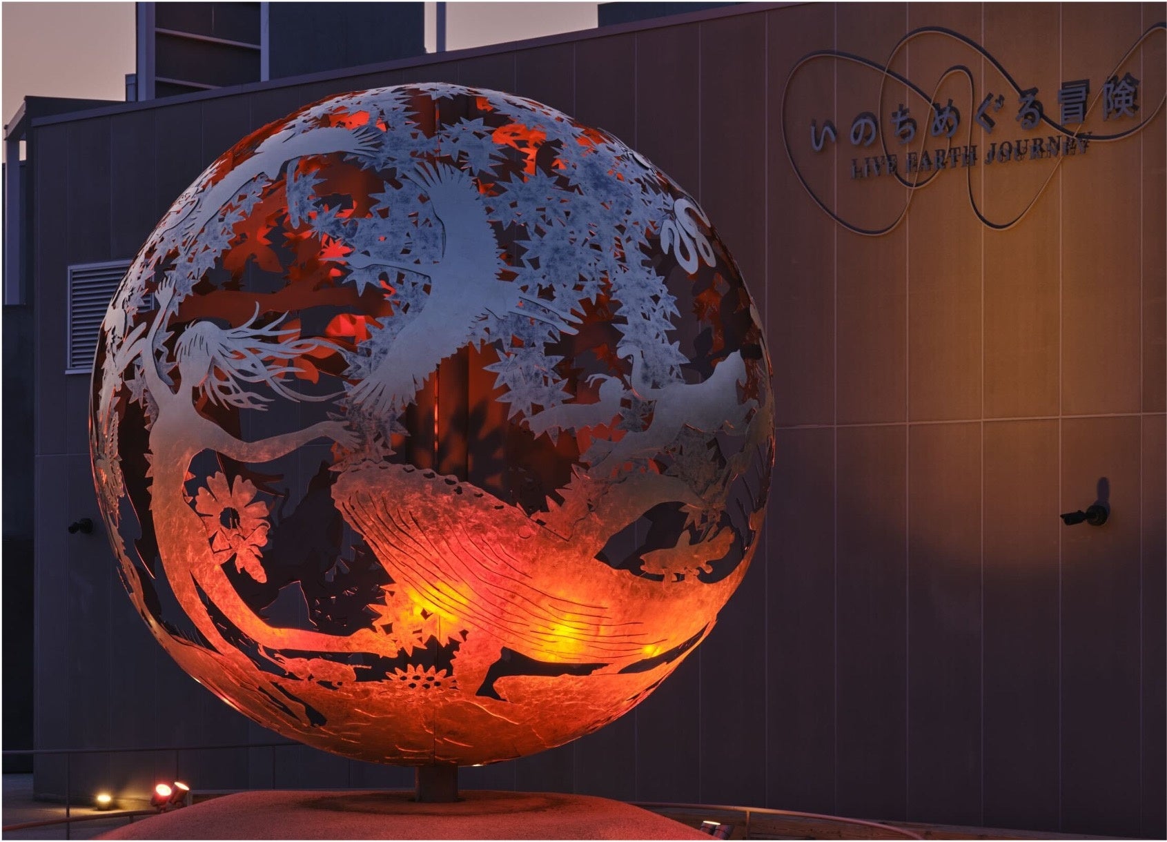 ゾウやクジラ、樹木やキノコ、アリそしてヒト。全てのいきものに上も下もない。いのちに大小もない。生物多様性を合体・変形させた象徴が「いのち球」です。