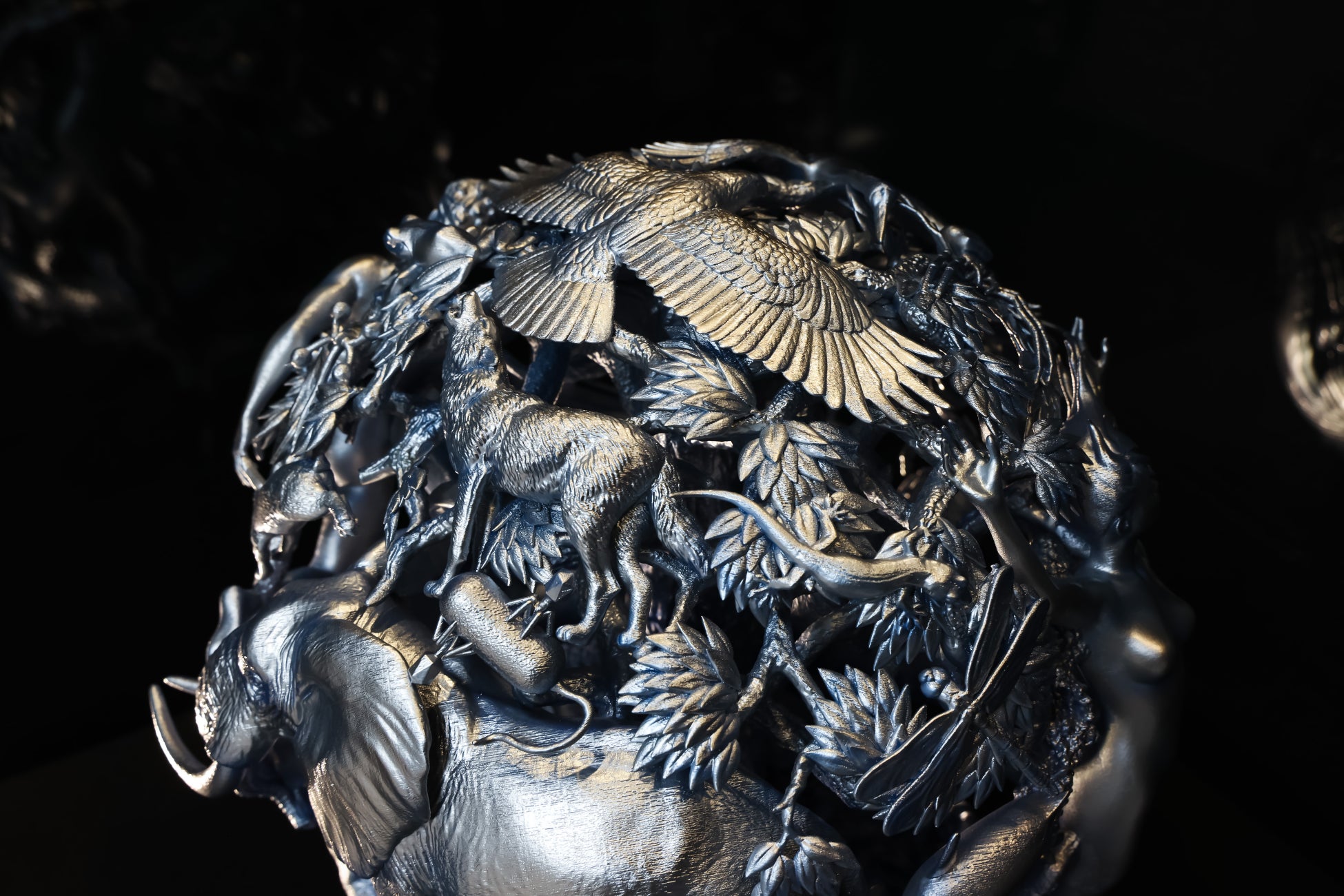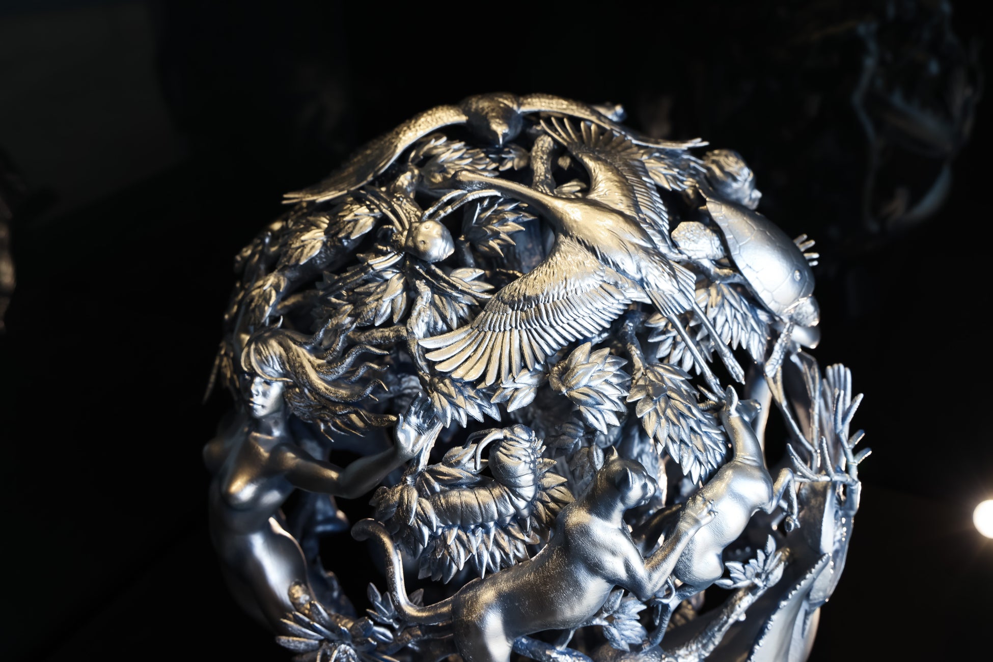 従来の造形技術を超えた精密な細部によって、多種多様ないのちが複雑に絡み合いながらも共鳴、調和する姿を見事に再現しています。