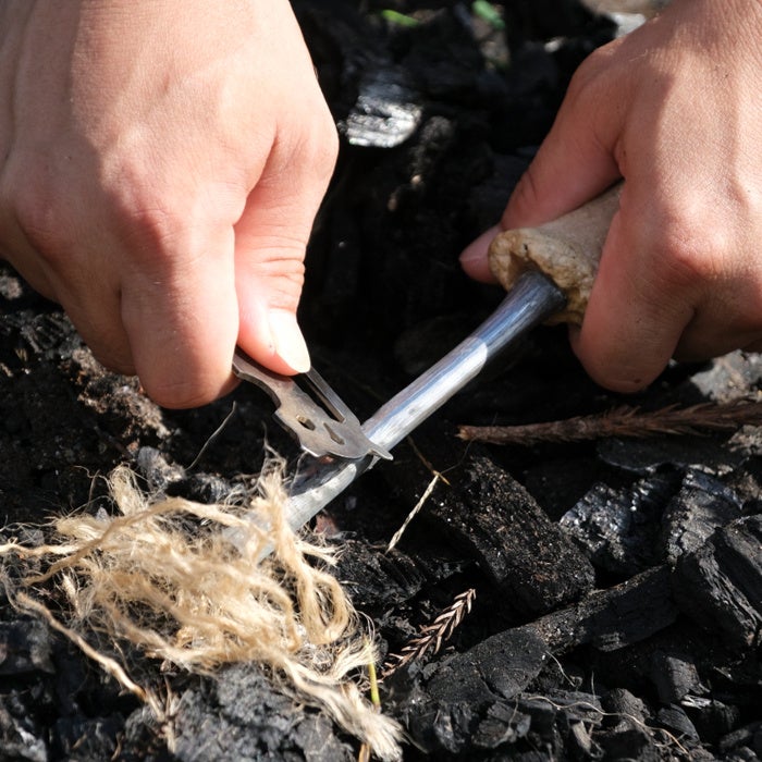 独特のデザインと実用性を兼ね備えたこのファイアスターターは、静岡県川根本町で採れた鹿の角を使用した、一点ものの火起こし器です。