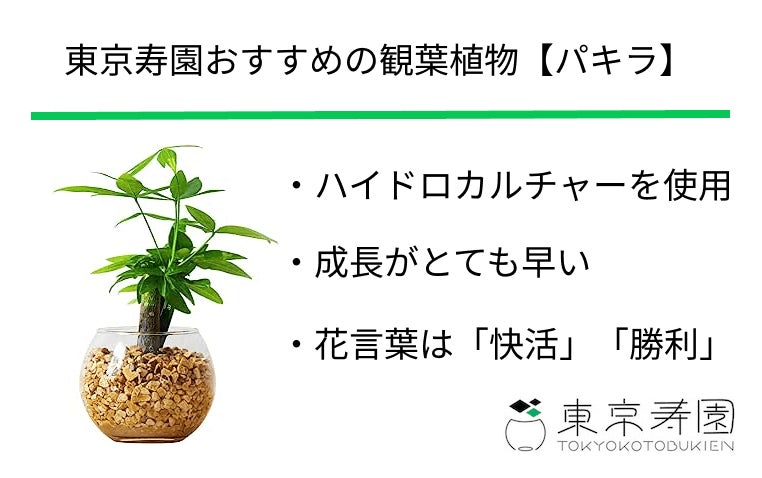 パキラは原産地では熱帯の日当たりが良い場所に生育します。パキラはとても成長が早く、お世話も簡単で、観葉植物が初心者の方でも簡単に育てることができます。パキラは、「負のエネルギーを吸収する」という風水効果があります。開店祝いやプレゼントなどにとてもおすすめの観葉植物です。