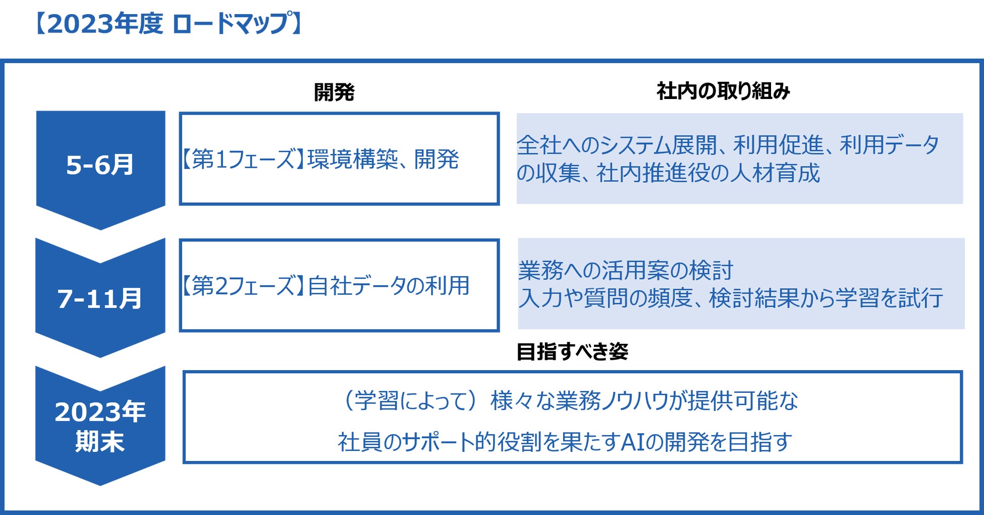 当社グループは、中期成長戦略の一つに「DXの推進」を掲げており、DXによるお客様へのサービス価値向上と社員の業務効率化に取り組んでいます。今回のシステムバージョンアップでは、数ある社内規定や業務マニュアル、提案書といった会社独自のデータをAIに学習させることで、より実務的な質問に対して回答を得ることが可能となります。これにより、回答取得までの時間短縮による業務効率化や、社内の知見・ノウハウの取得によるナレッジの向上を実現します。業務の効率化によって生み出される時間や当社グループの豊富な知見・ノウハウを、お客様への対応や付加価値提案等に充てることで、今後も更なる提供サービスの向上に努めてまいります。