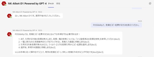 ※2023年6月にGPT3.5エンジンを利用した「NK-AIbot Powered by GPT-3.5」、その後2023年8月にGPT4エンジンを利用した「NK-AIbot Powered by GPT-4」を導入しております。