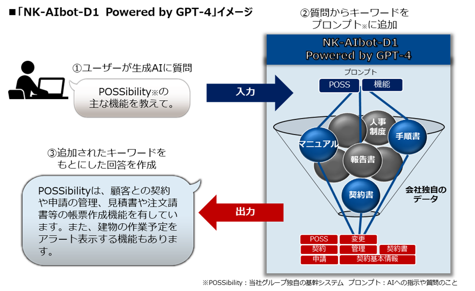 日本管財グループ、独自生成AIに自社データの活用機能を追加した「NK-AIbot-D1 Powered by GPT-4」の導入を開始