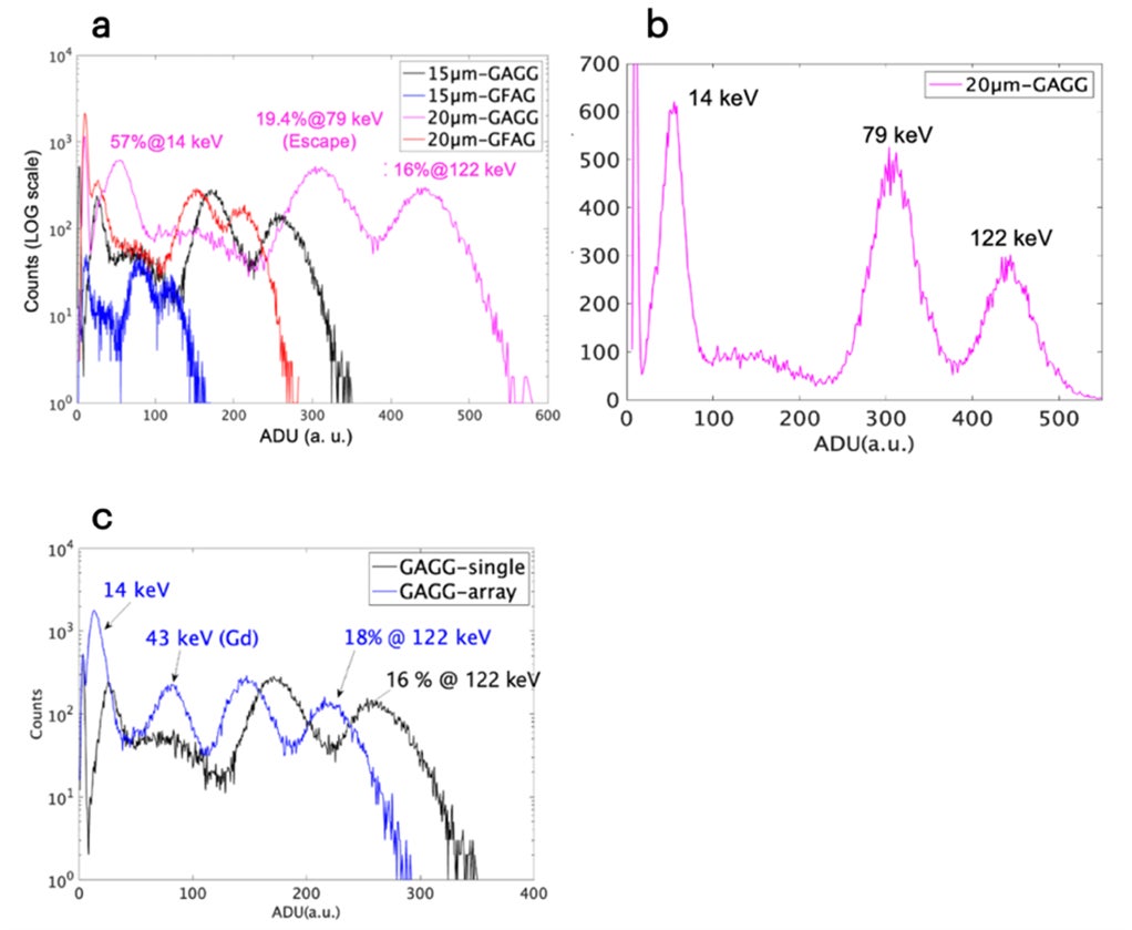 本研究成果により、実用的な画素サイズをもつ間接変換型マルチカラーフォトンカウンティングCTへの利用可能性が実証されました。今後、単純撮像や造影剤撮像におけるX線CTの低被ばく化や、生体内の物質識別能力をもった診断技術の実現といった社会への波及効果が期待されます。また、さらに高エネルギーのX線撮像技術への応用展開など、関連する研究の発展にも貢献すると考えられます。