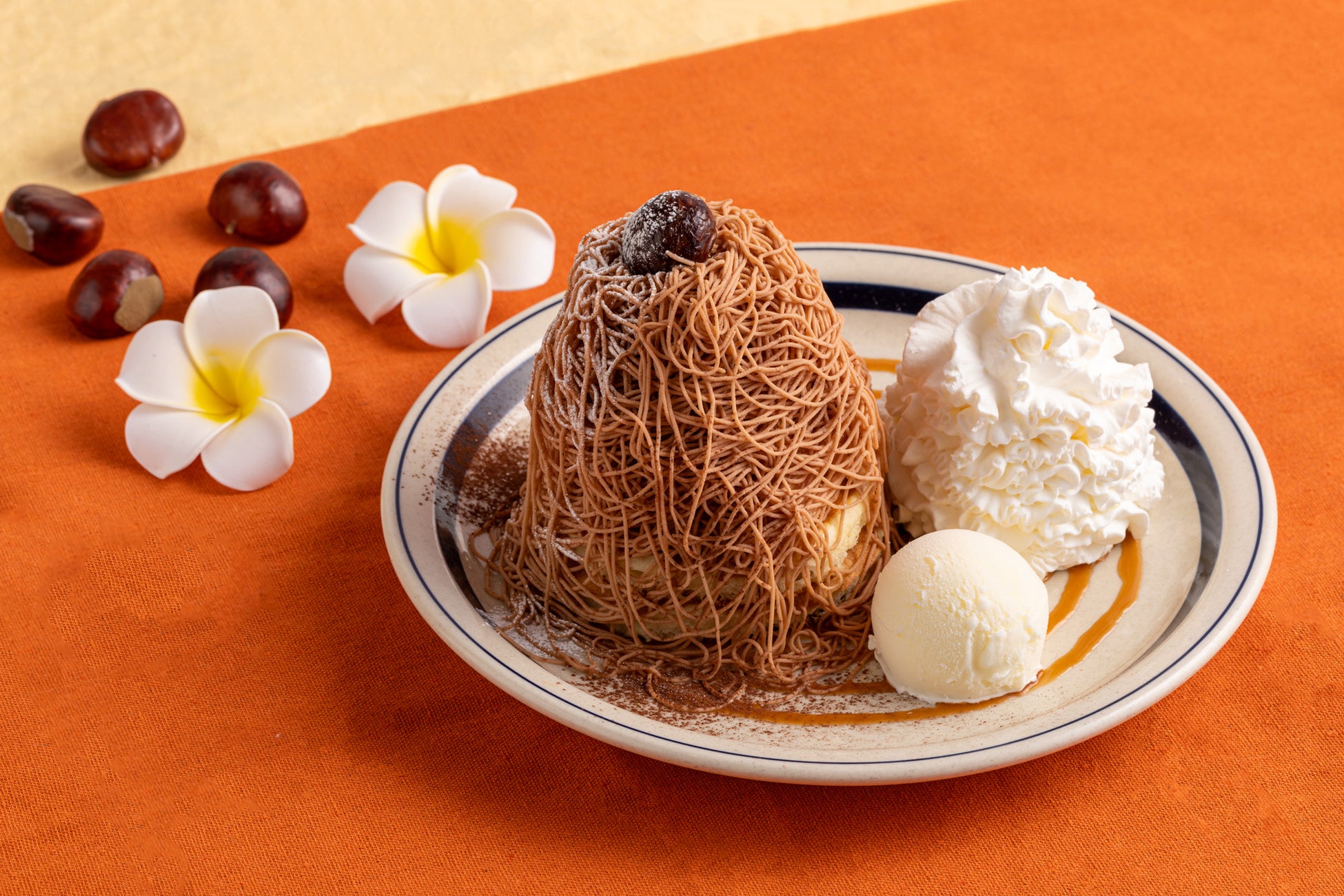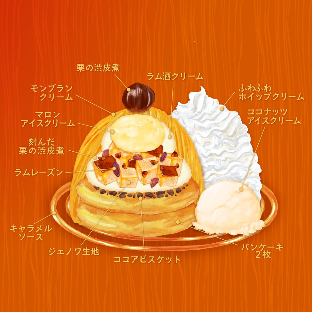 ご好評につき4年目突入!イタリア産の栗とラムの華やかな香りがココナッツアイスと合わさる風味豊かなハワイ仕立ての「モンブランパンケーキ」が登場!