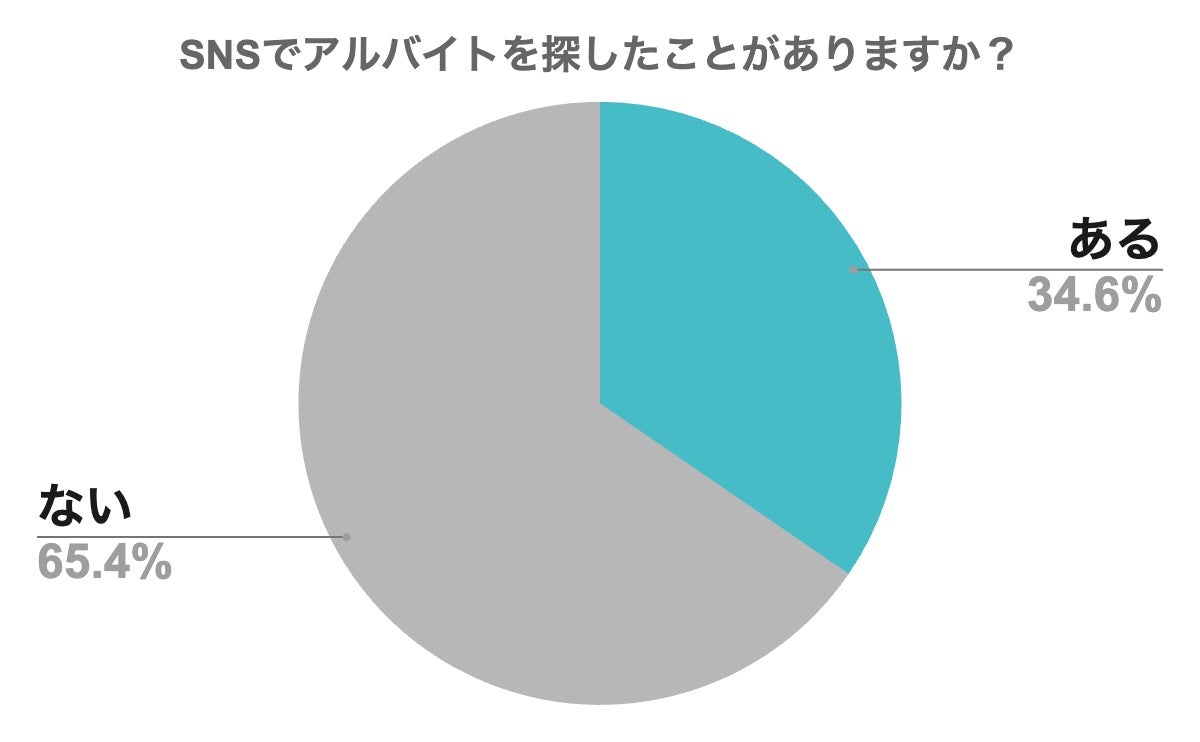 回答があったユーザーのうち、SNSでアルバイトを探したことがあるユーザーは34.6%ということがわかりました。