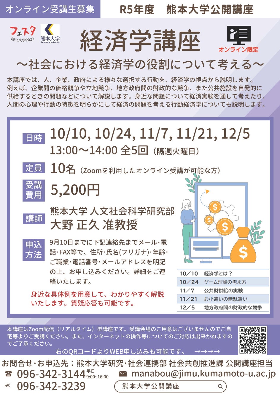 【講座名】 『経済学講座~社会における経済学の役割について考える~』