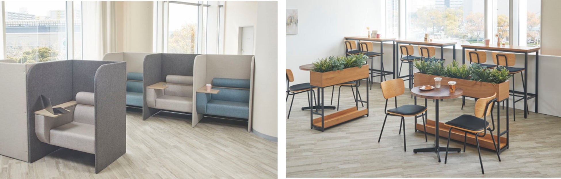 本展示会では、オフィス事業のサービス紹介とともに、新商品の「テーブル付きブースソファ」や「ロビーベンチソファ」などの展示を予定しています。業界最大級の業務用通販「ストア・エキスプレス」の最新の総合カタログ41号(2025.7月~2026.6月末)の発行直前の出展となることから、その他の新商品も初めてご案内します。