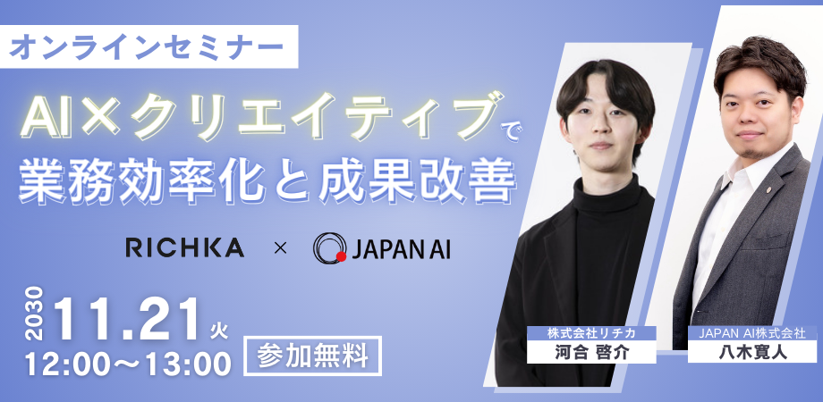 【無料オンラインセミナー】「AI×クリエイティブで実現する業務効率化とマーケティングの成果改善」を開催