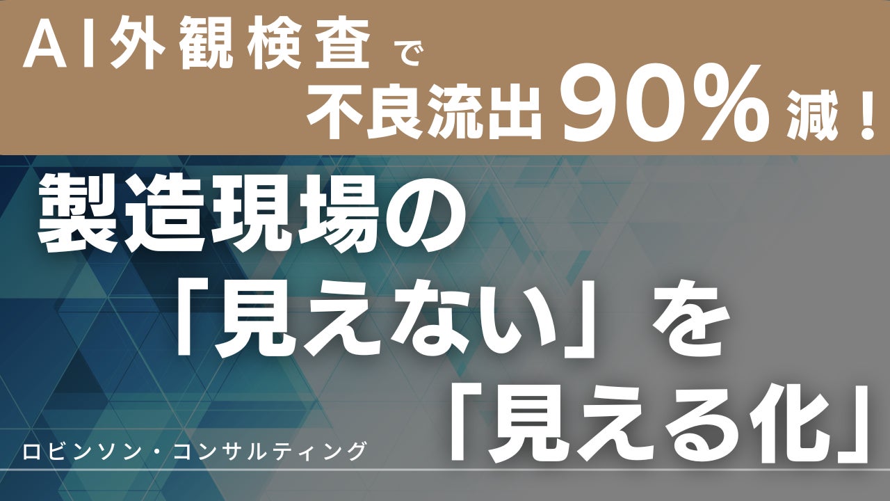 【AI外観検査で不良流出90%減!】ロビンソン・コンサルティング、製造現場の「見えない」を「見える化」
