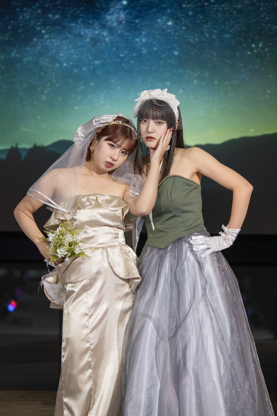 学校法人ソニー学園 湘北短期大学(厚木市温水428、学長 髙橋 洋)は、11月30日(土)に「湘北短期大学ファッションショー -Show one's originality-」を開催します。2004年から開催しているこのファッションショーはコロナ禍ではオンラインで開催してきました。21回目を迎える今年のテーマは「Show one's originality」。例年同様、生活プロデュース学科の2年生を中心に、今年は総合ビジネス・情報学科の学生がスタッフとして参加、総勢25名の学生で運営する学科を横断するイベントになりました。衣装製作からショーの構成・舞台美術・映像による演出など全て学生による手作りで行い、衣装製作や空間プロデュースなど生活プロデュース学科の学生が専門的に学んできた知識や体験を生かし、個々の創造力と個性を発揮・表現する集大成の機会です。当日のショーでは、太田ゼミ・奥脇ゼミ15名の学生が自らデザインした衣装を身にまとい、ランウェーを歩きます。