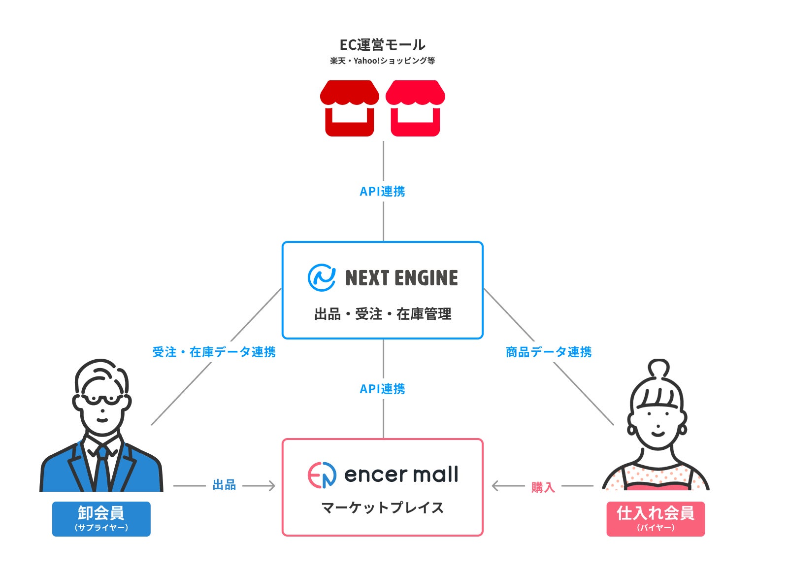 ~ネクストエンジンとの受注・在庫・出品の連携が可能になる月額無料サービス、「encer mall連携 for 卸会員」アプリをリリース~