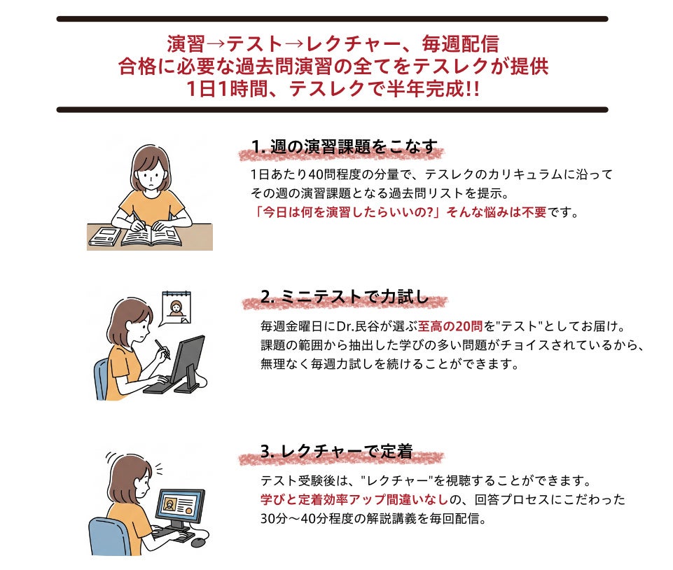 内容:分類別過去問リスト・webテスト・レクチャー動画 ×24回