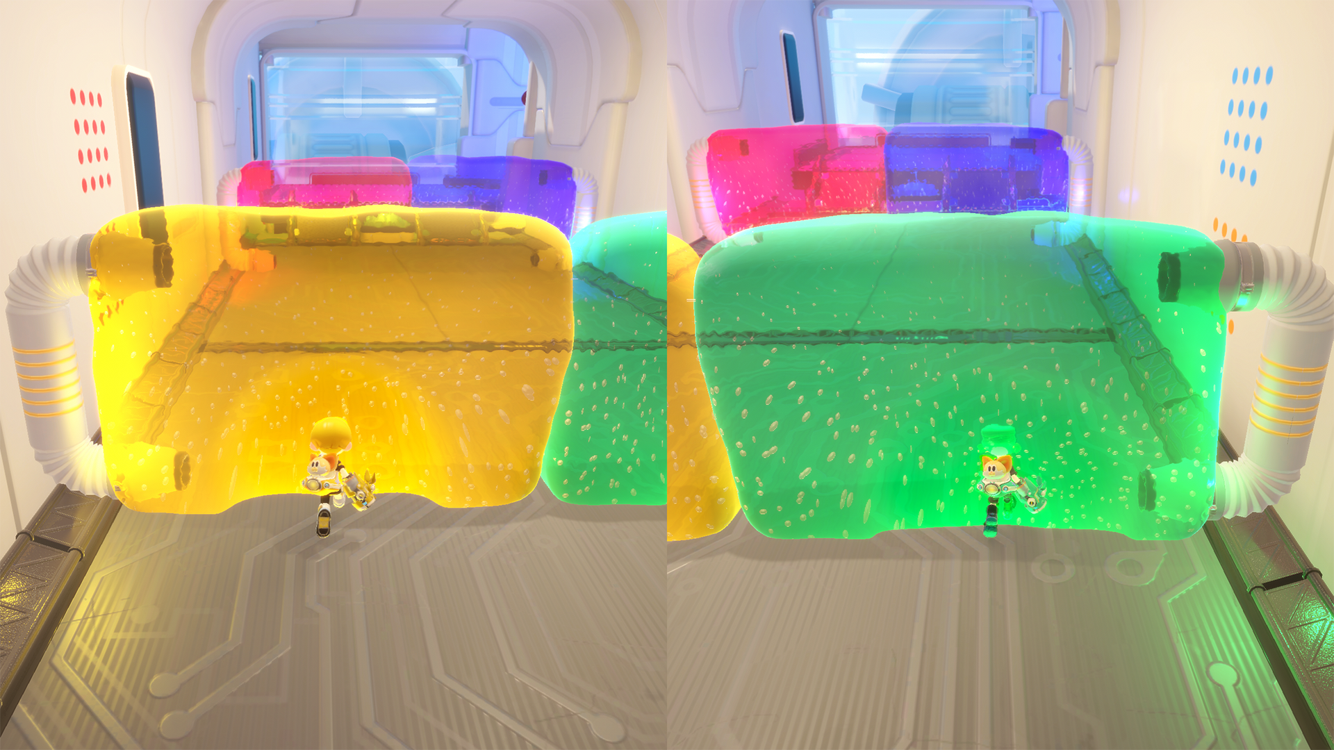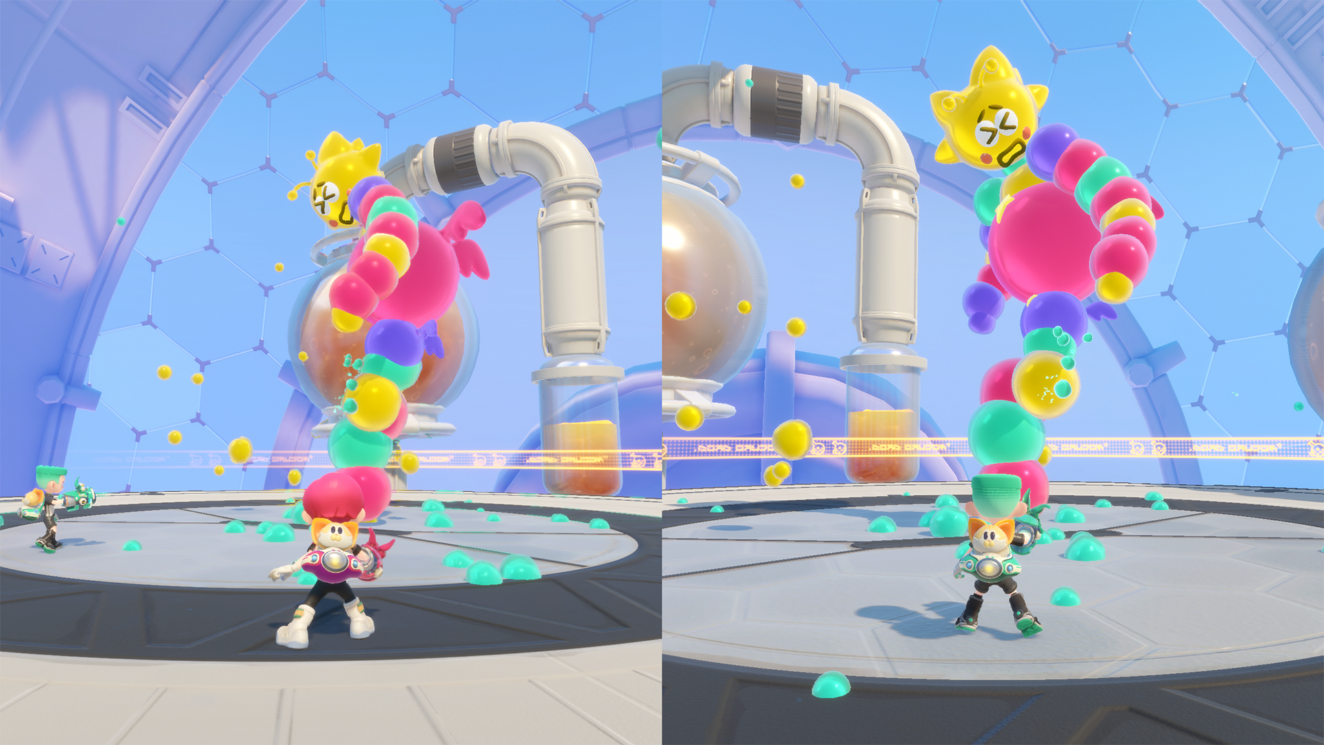 この不思議な世界では、「色」は謎を解くだけでなく、戦いの基本にもなる。「色」を自由自在に操って、ギミックを動かしたり、パズルを解いたり、いろんな色の「ポム」をまわりに発射して、何が起こるか試してみよう。「色」を変化させたり、消したりしながら謎を解き明かし、敵を倒して、不思議な世界からの挑戦状をクリアしていこう!