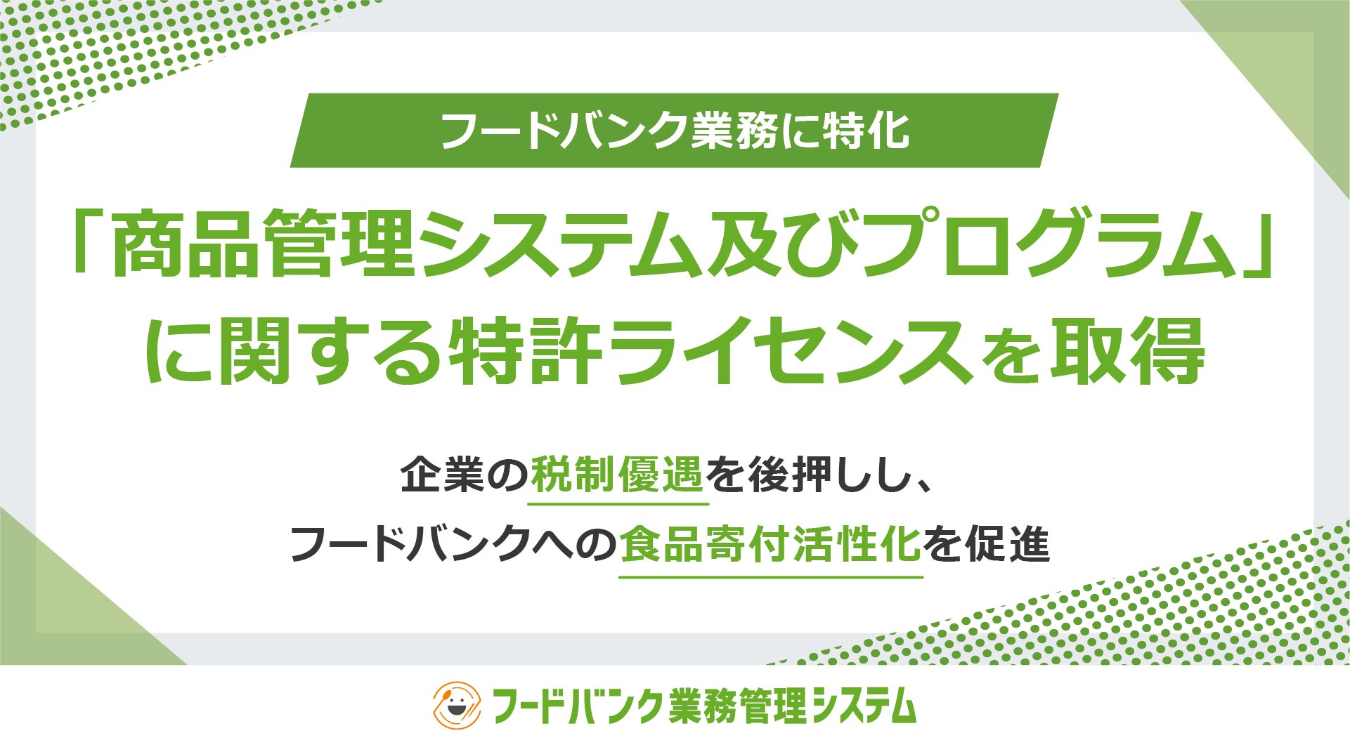 「フードバンク業務」に特化した「商品管理システム及びプログラム」に関する特許ライセンスを取得