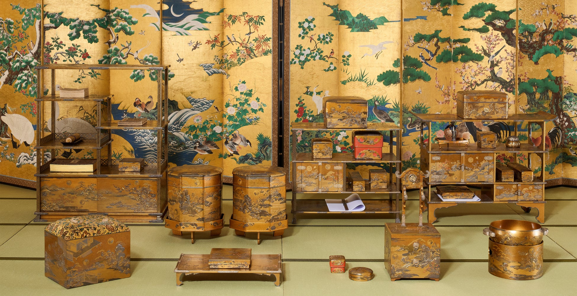 国宝「初音の調度」は徳川美術館の所蔵品の中でも一際、輝きを放つ不朽の名品です。蒔絵の最高傑作として世界的にも知られる本作は、将軍家の姫君の婚礼調度として制作されました。現存する70件の調度類のすべてを10年振りに一挙公開いたします。