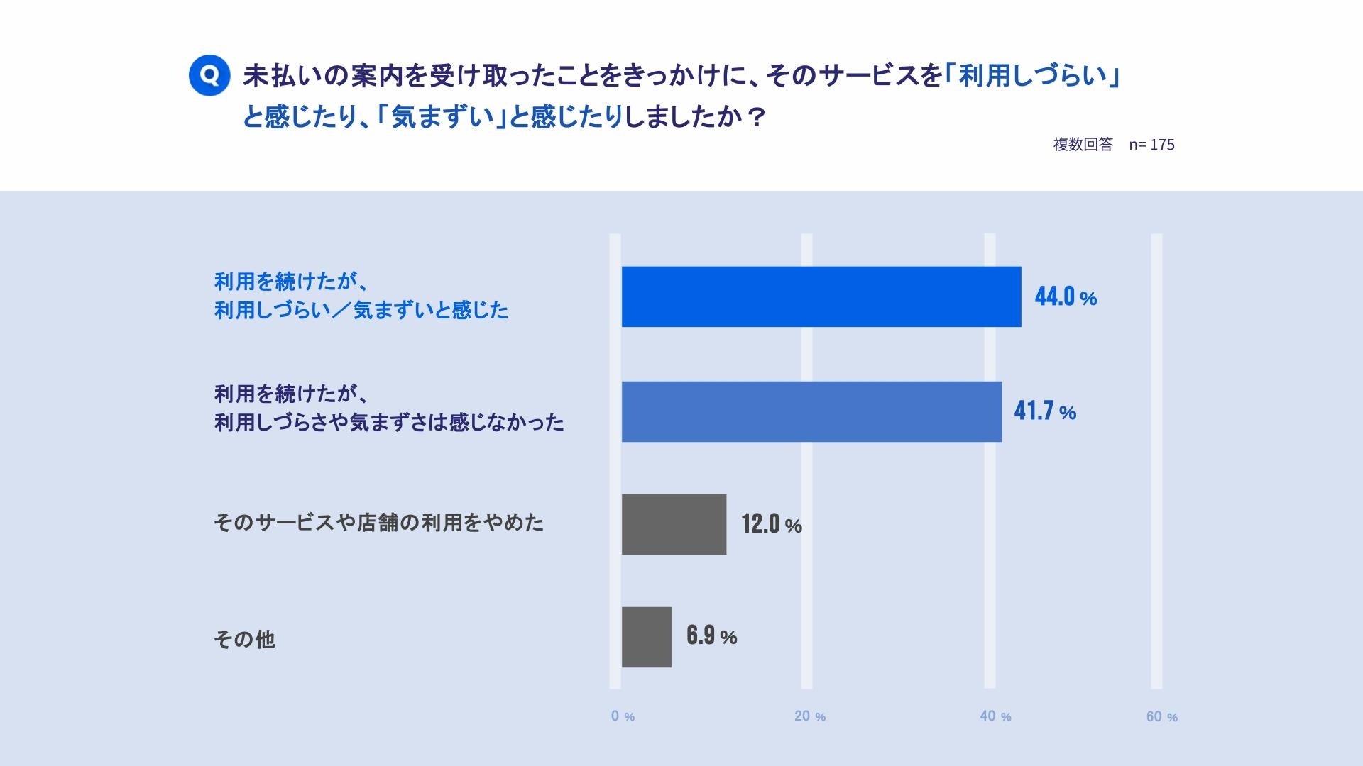 本調査から、未払いは一部の消費者によるものではなく、5人に1人の割合で発生している実態が見えてきました。理由も、支払い忘れや決済エラー、解約手続きの認識違いなど、見落としや手続き・認識のズレによって起きているケースが多いことが分かります。