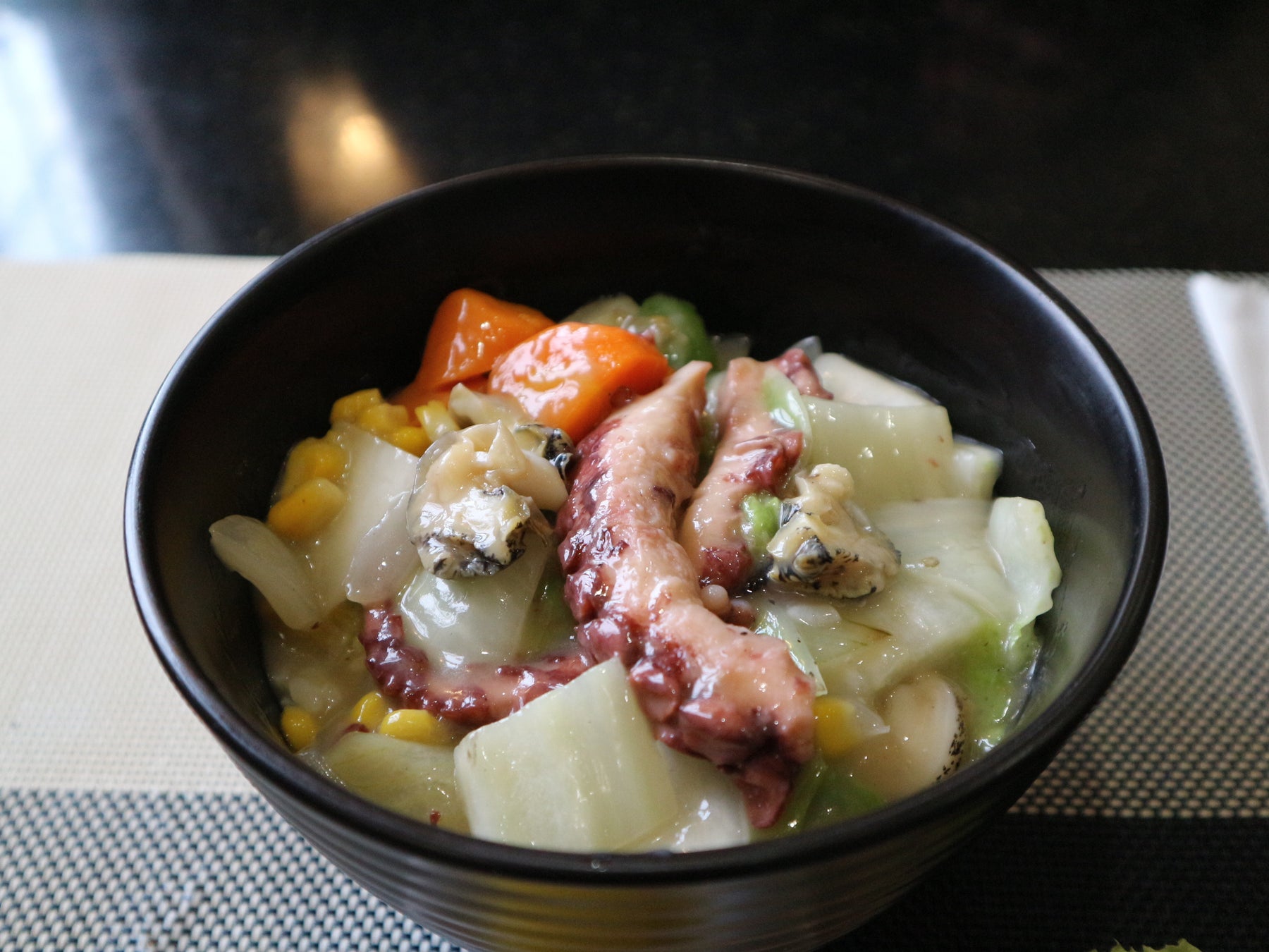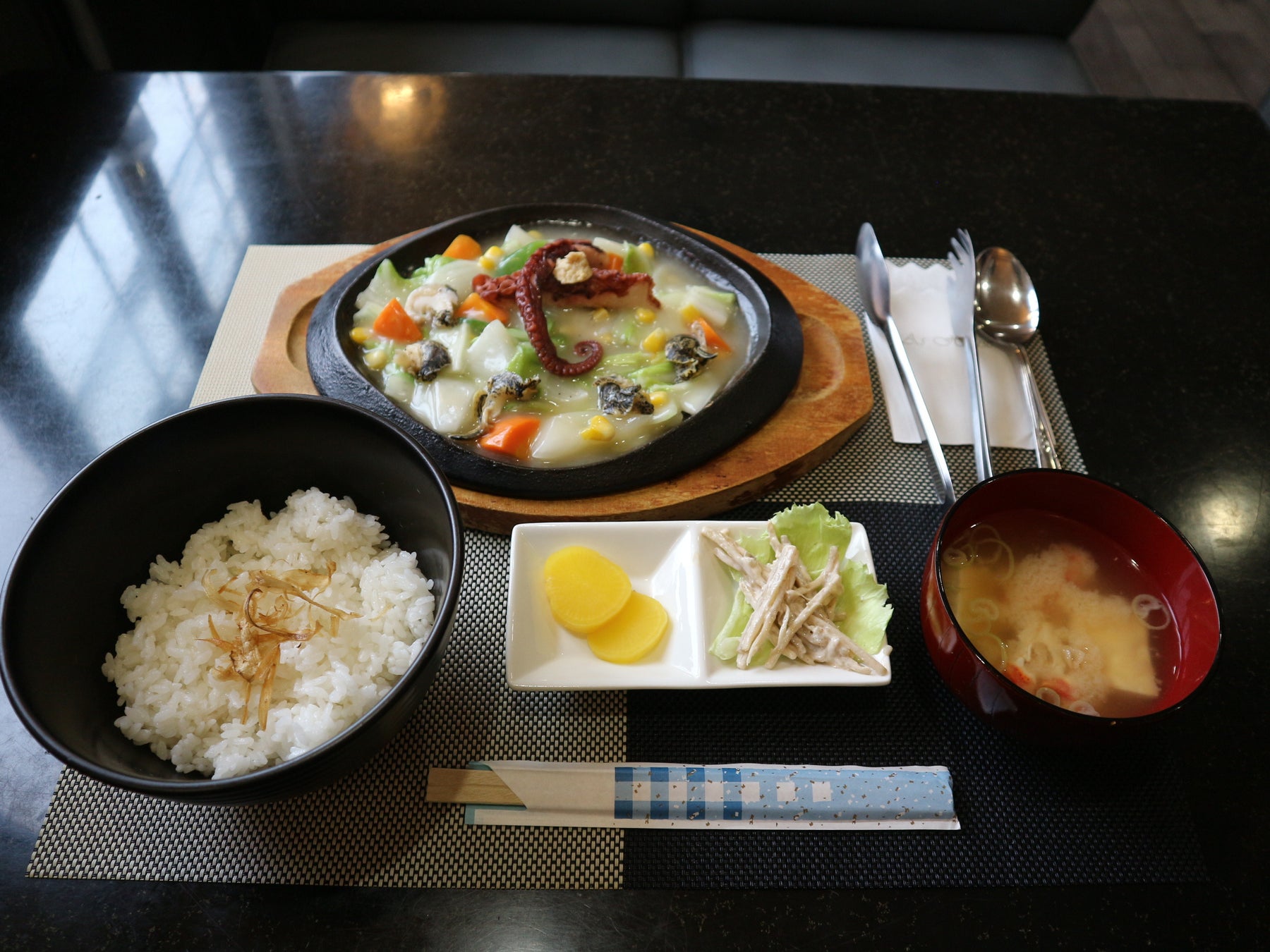 ご当地メニューでもある『白糠タコつぶステーキ丼』は、たっぷりの野菜あんかけに、タコつぶと柳だこがトッピングされており、北海道の恵みが詰まった豪快な一品です。丼と名前がついているにも関わらず、丼ではない状態で運ばれるのも、これまた楽しみのひとつ。ごはんの上に自分であんかけを乗せて、食欲のままにひたすら食べるというのが公式の食べ方なのです。