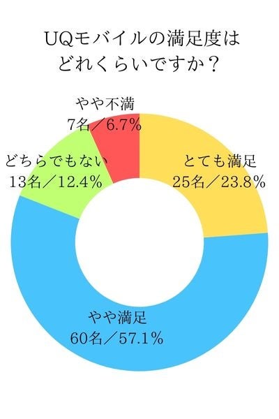 UQモバイルに対する満足度として最も多かったのは、やや満足で57.1%でした。