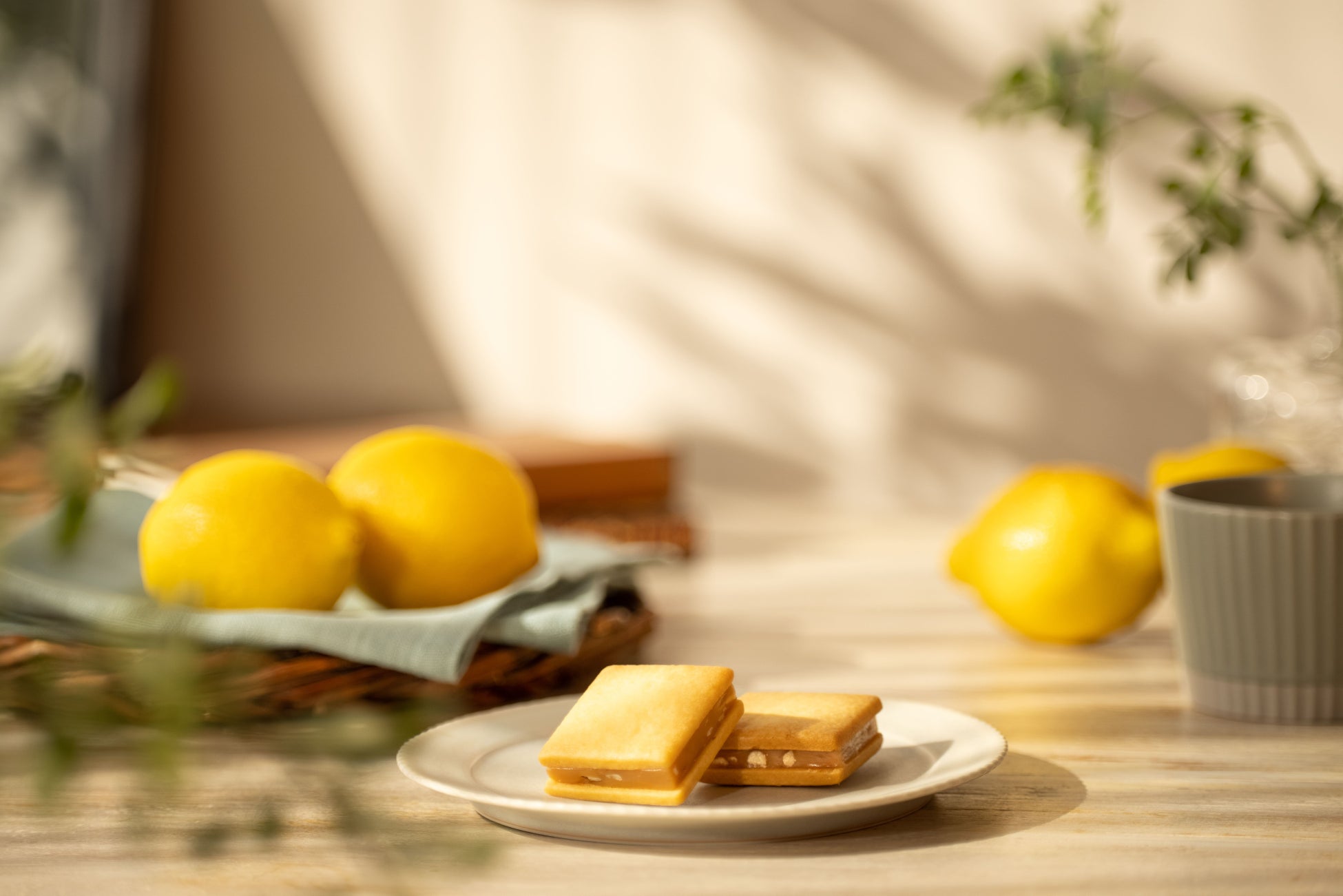 さっぱり甘いレモン味のキャラメルをさくっとした軽い食感のクッキーでサンドしました。