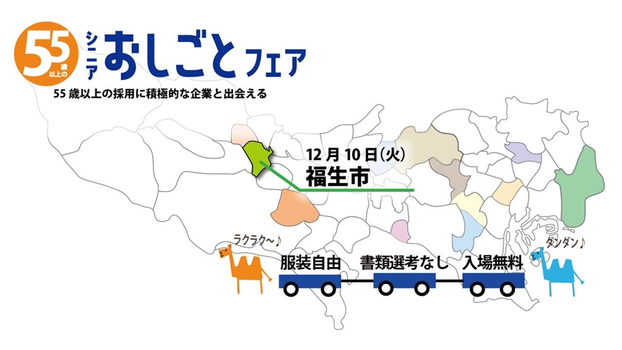 55歳以上のキャリア応援!強みを活かしたお仕事探し!東京都主催「シニアおしごとフェア」福生市で開催