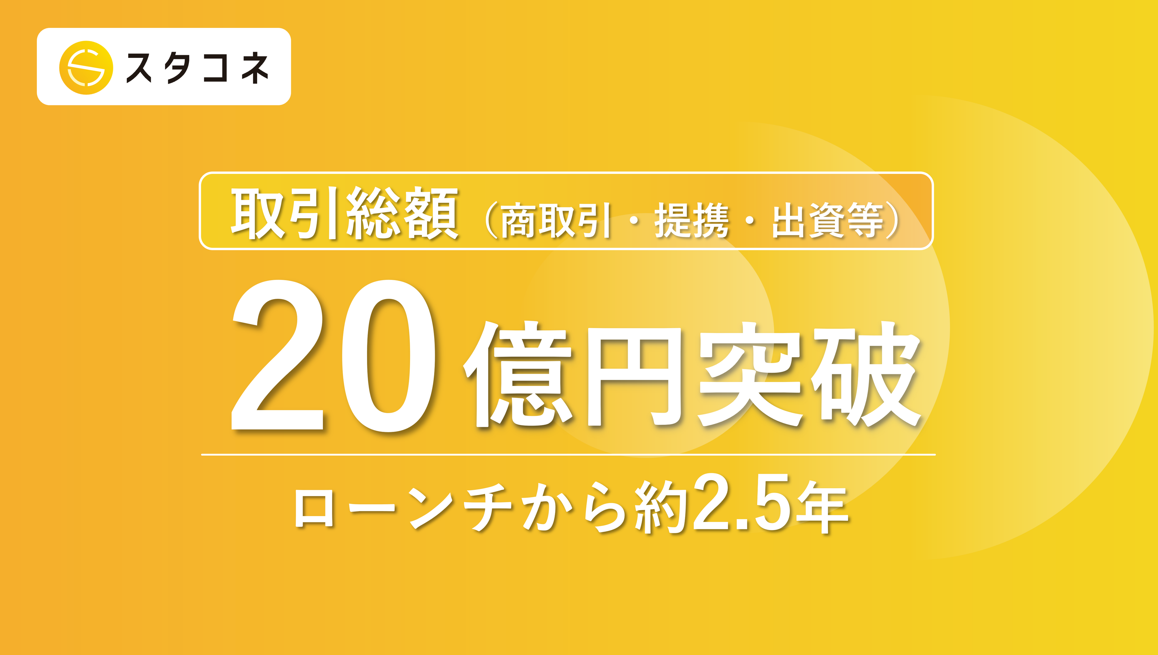 「スタコネ」ローンチから約2.5年で取引総額20億円を突破