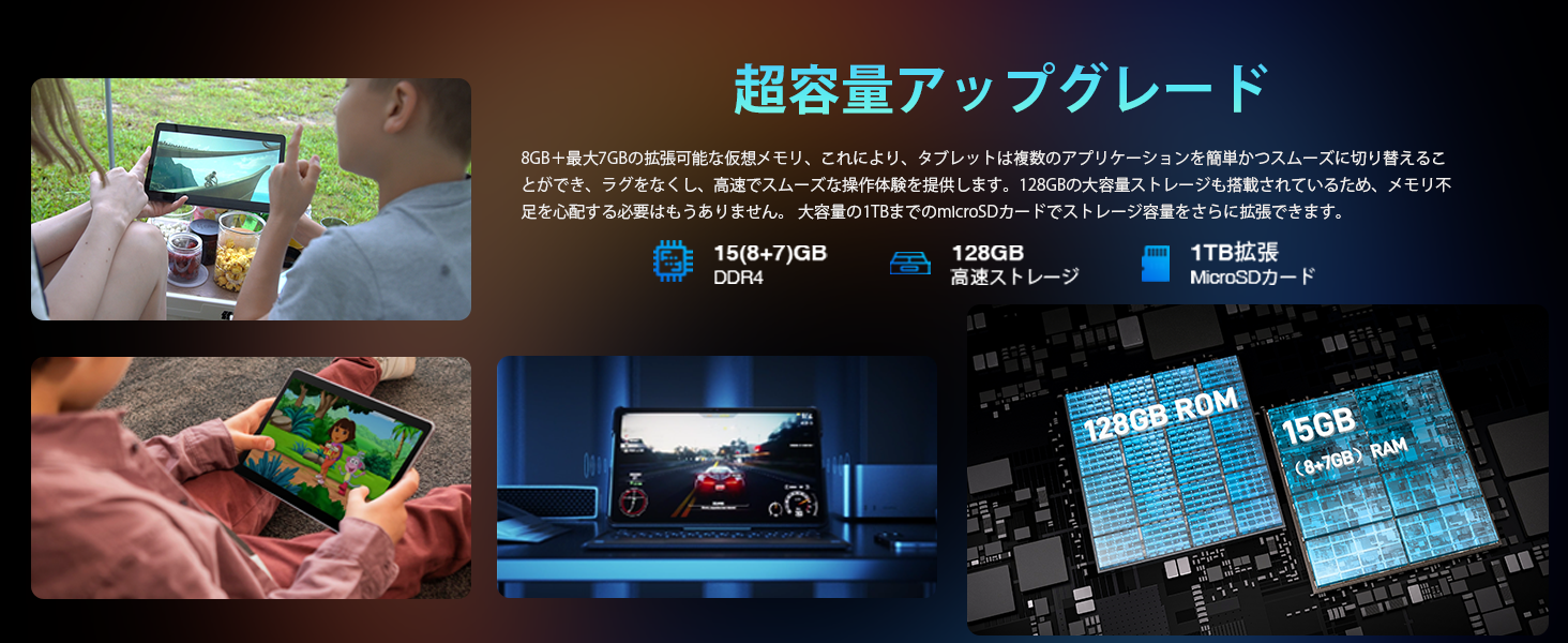 8GBの高速LPDDR4X RAMを誇り、さらに最大7GBまでの豊富な仮想メモリ拡張を提供します。128GB 高速ストレージ チップを搭載し、最大1TBのMicro SDカード容量拡張をサポートし、ユーザーのニーズに簡単に対応できるストレージソリューションを提供します。