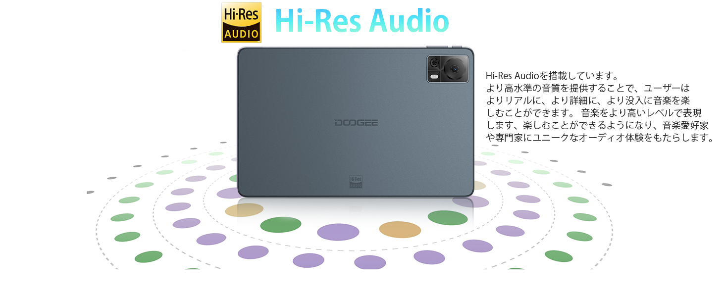 Hi-Res Audioを搭載しています。 より高水準の音質を提供することで、ユーザーはよりリアルに、より詳細に、より没入に音楽を楽しむことができます。 音楽をより高いレベルで表現します、楽しむことができるようになり、音楽愛好家や専門家にユニークなオーディオ体験をもたらします。