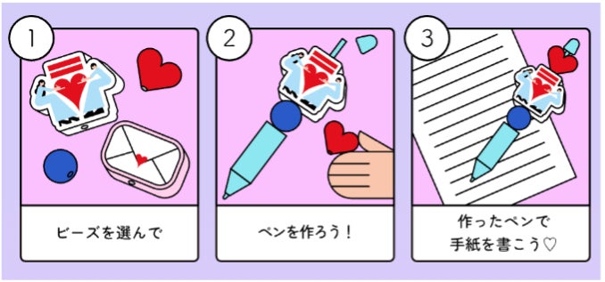 さらに、人気コンテンツの「カラフル♡ファンレター」や「こっそり♡告白レター」、好きなビーズを組み合わせて自分だけのペンが作れる「ときめき♡レターペン」、会場限定デザイン切手をガチャでゲットできる「ズッキュン♡切手ガチャ」なども引き続きお楽しみいただけます。